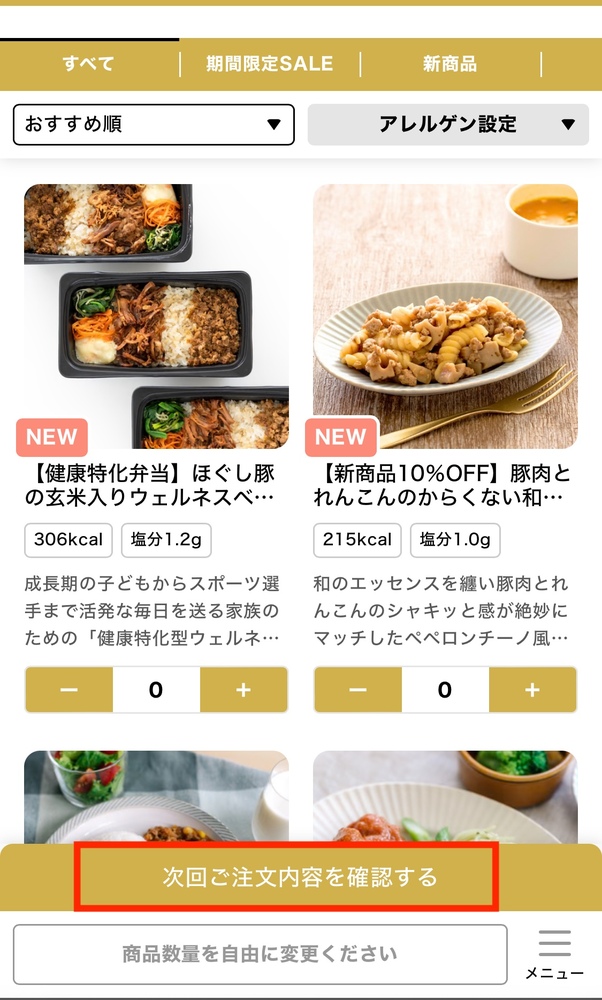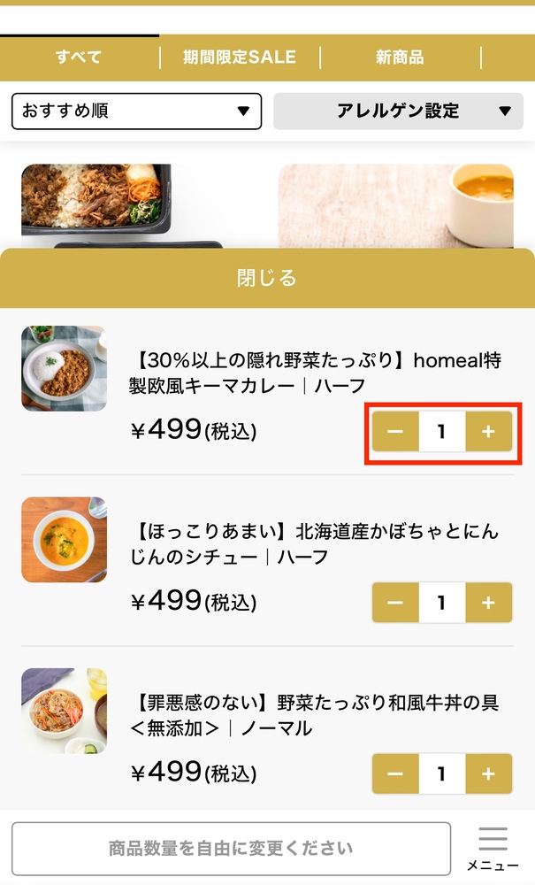 homealの継続コースの内容(メニュー・数量・お届けの都度)は、お客さまのマイページから変更していただくことが可能です。変更できる項目は以下です。