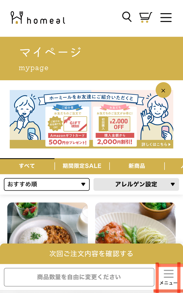 ※マイページ上で、1商品ごとに数量追加/削除など、継続コースの注文内容変更が可能です。