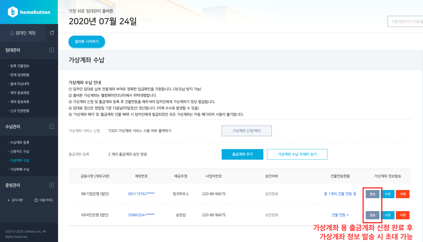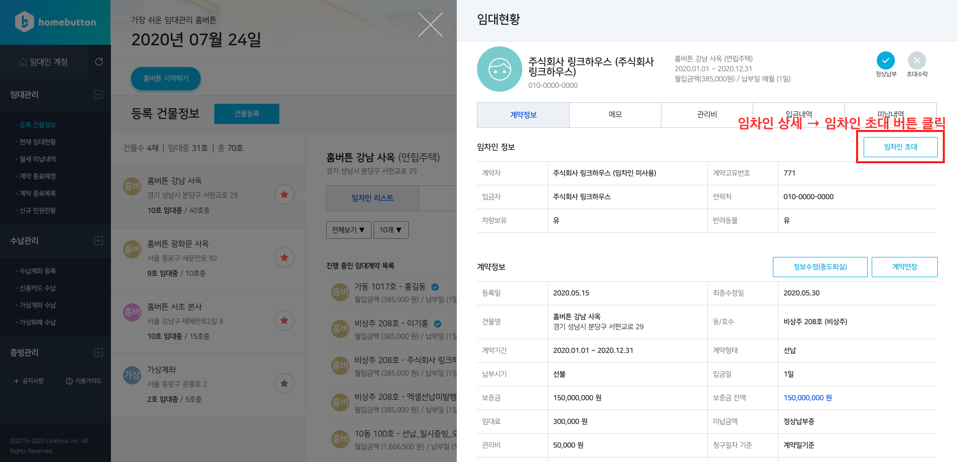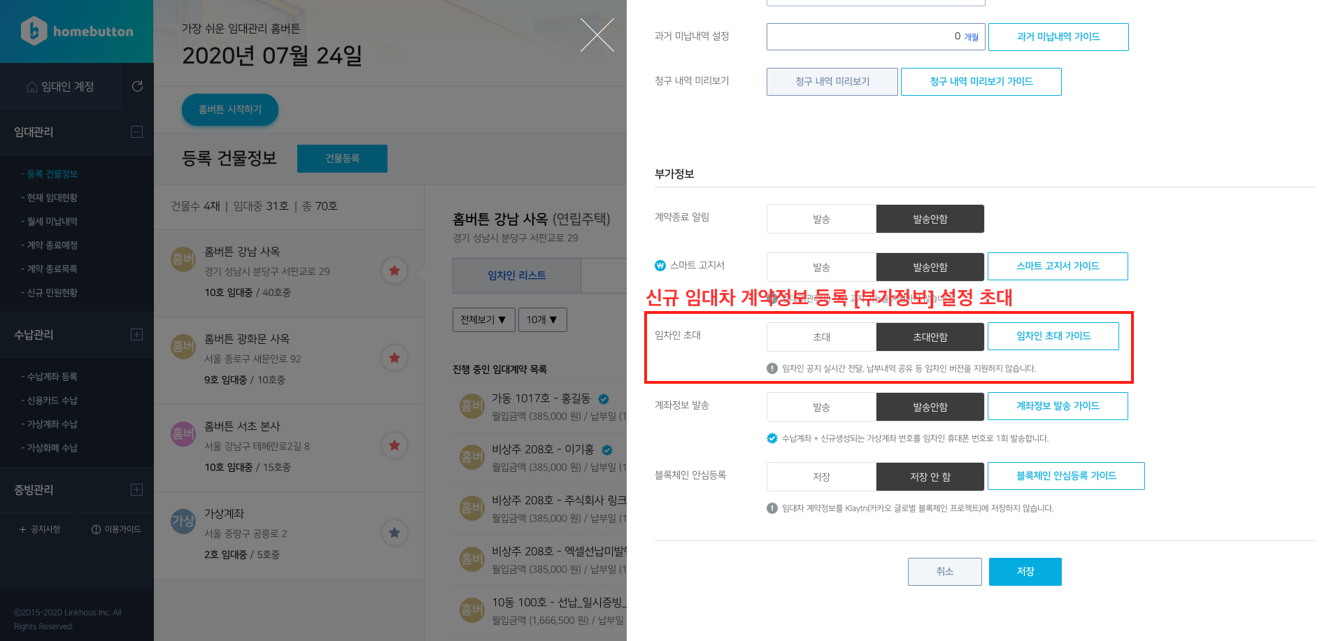 2025년부터 홈버튼에서 임차인계정 초대 기능은 더이상 지원하지 않습니다.