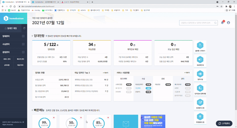 1. [임대관리]→[건물정보]→[임대계약 목록]→임차인 클릭→[입금내역]