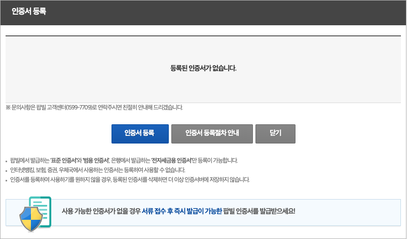 [공인인증서 등록 팝업창]