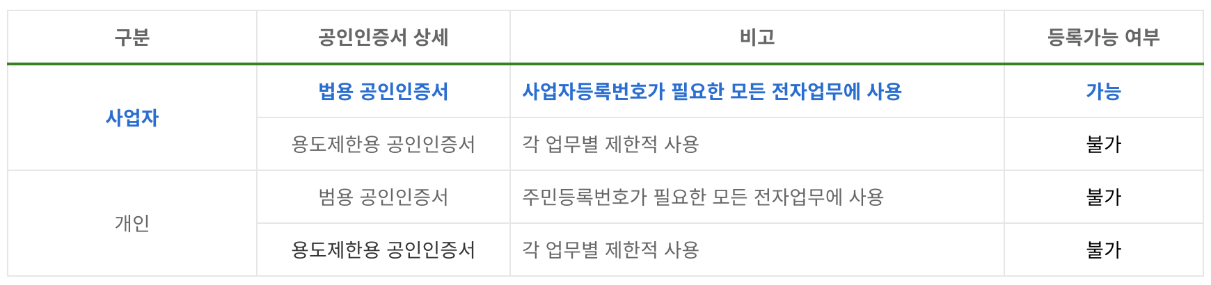 개인 공인인증서는 등록 불가능합니다.