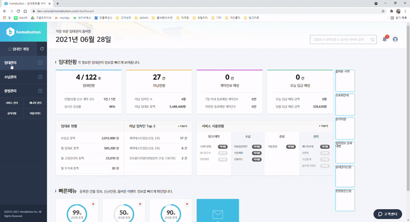 1. [임대관리]→[건물정보]→[임대계약 목록]→임차인 클릭→[입금내역]→납부데이터 클릭→[납부데이터 상세 정보]