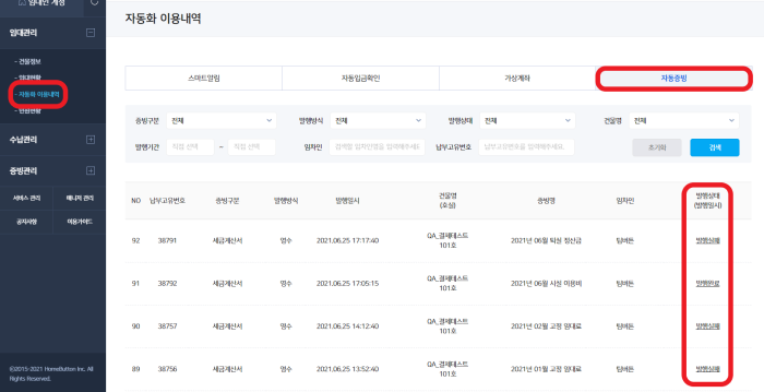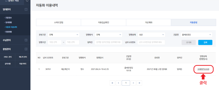 2. [임대관리]→[자동화 이용내역]→[자동증빙]
