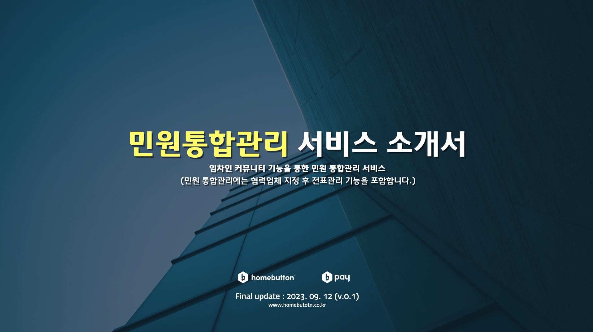 공지/민원 통합관리 개요임차인 민원(VoC)통합관리 서비스로 건물별 공지사항 전달 및 모바일 민원접수 및 내역 확인 기능을 제공합니다. 서비스 설정 상세하단 서비스 소개서 상세화면 클릭 시 상세 설명 및 도입 방법에 대한 가이드 확인이 가능합니다. https://drive.google.com/file/d/19S_7h6zpgpYEiJdJ2yqcoKOTANEbqA-b/view