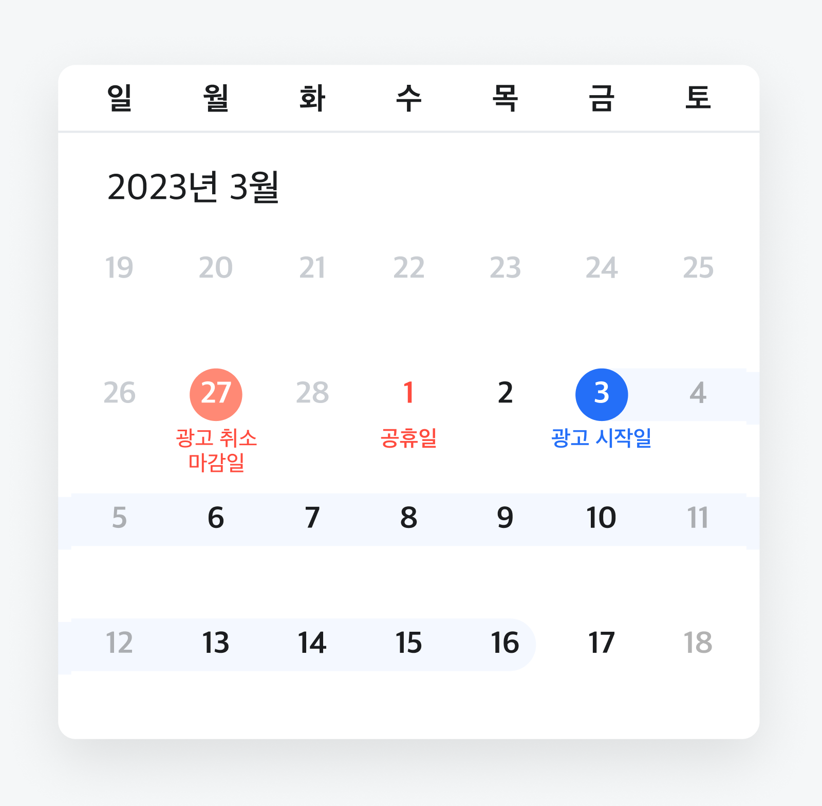 예시: 3월 1일(수) 광고 시작일인 경우 → 2월 23일(목)까지 취소 요청 시 전액 환불 가능