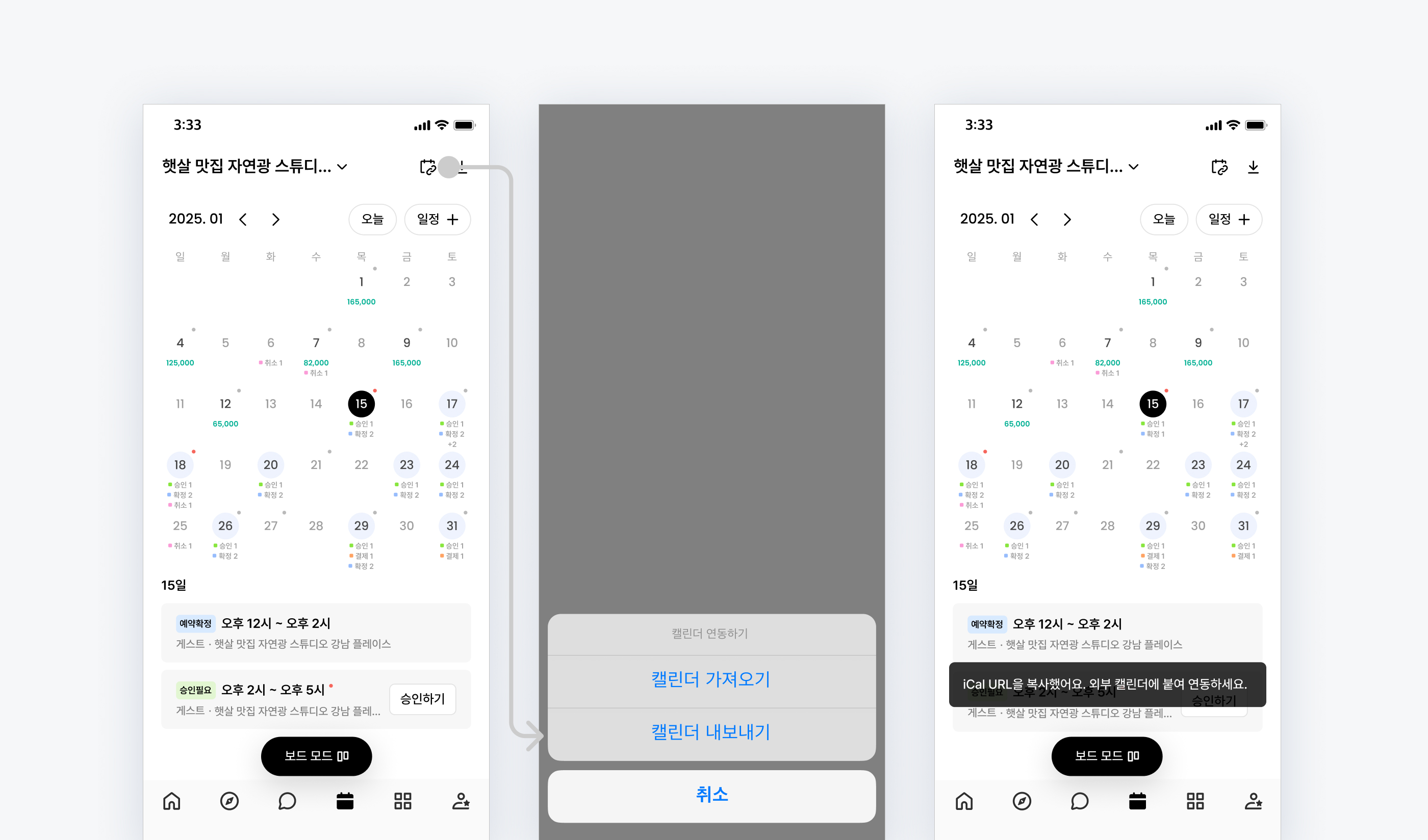 ์์ฑ๋ iCal ์ฃผ์๋ฅผ ๊ตฌ๊ธ, ๋ค์ด๋ฒ ๋ฑ ์ธ๋ถ ์บ๋ฆฐ๋์ ์ถ๊ฐํ์ฌ ์๋ฐฉํฅ ์ผ์ ํตํฉ ๊ฐ๋ฅ