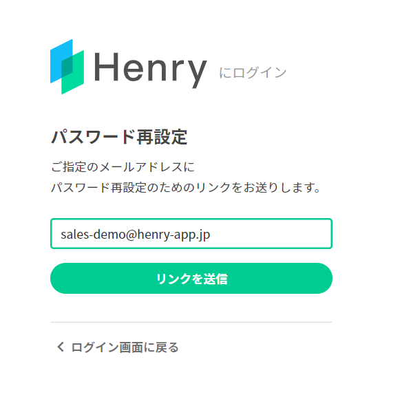 「リンクを送信」を押下すると、指定のメールアドレスへパスワード再設定メールが送信されます。(このメールアドレスは登録されているものである必要があります。)
