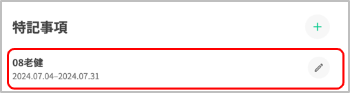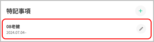 1.「特記事項」の右側にある「+」ボタンをクリックします。