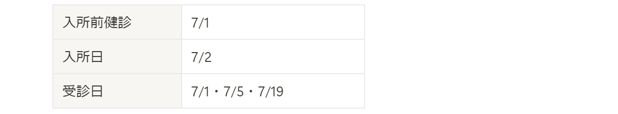 【例】10/1入所前健診・10/2入所・10/8受診ありの場合