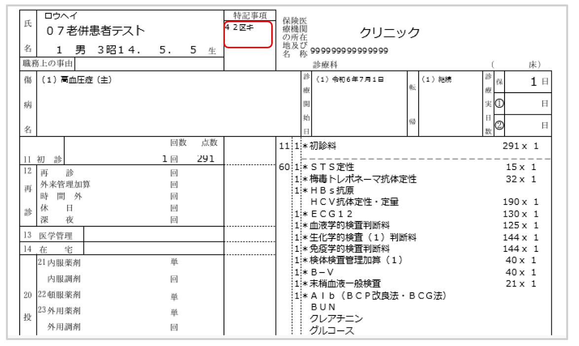 • レセプト2枚目                                         特記事項「07老併」あり:7/5および7/19診療分のレセプトが出力されます