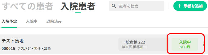 以降、前日の入院料は翌日AM3時に自動反映されます