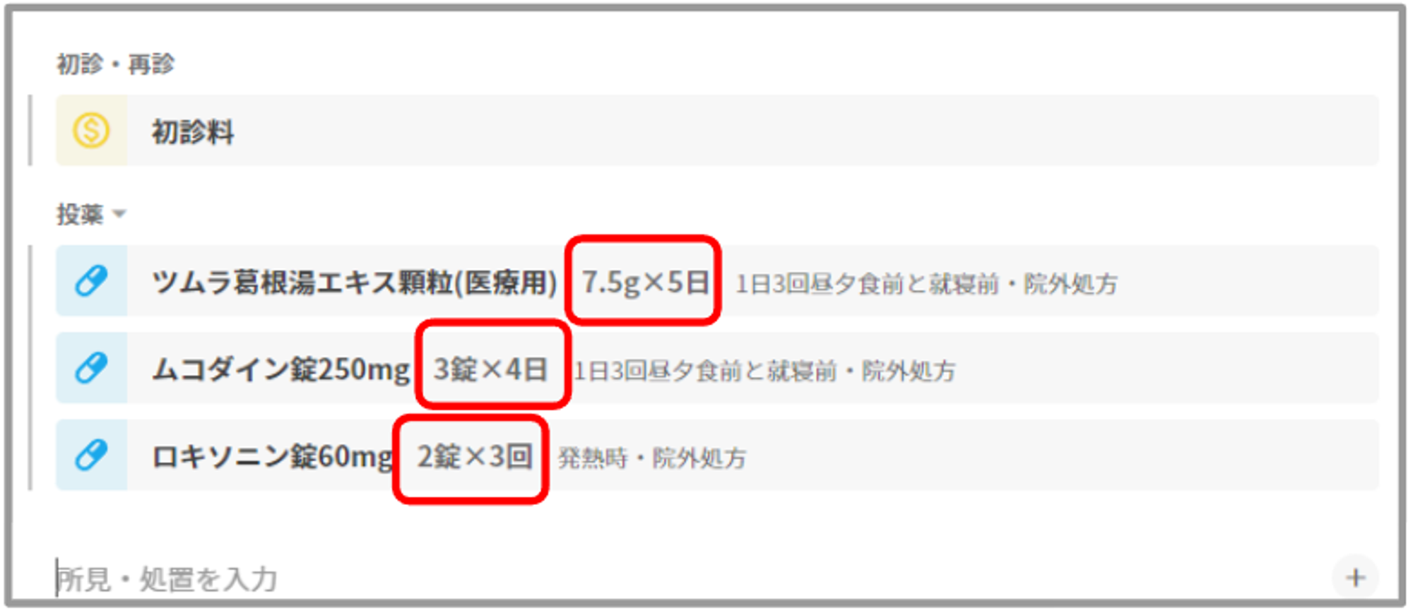 数量を設定すると「数量・単位✖日数(回数)」と表示されます