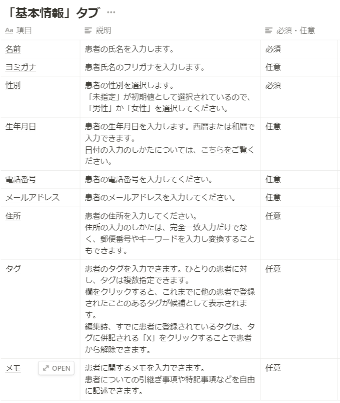[すべての患者]にて「+患者を作成」を押すと右側に患者情報を記入する欄が表示されます。