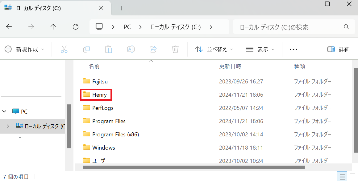 方法②「PC」→「ローカルディスク(C:)→Henryフォルダ→「henry-local-app.bat」をクリックして開きます。(下記画像参照)