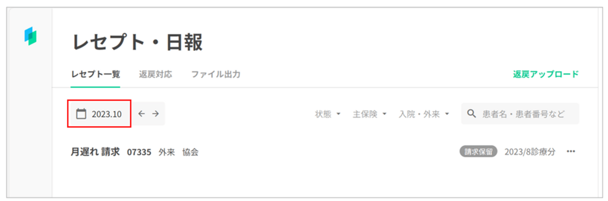 例)2023年9月診療分レセプトに含めて月遅れ請求する場合、「2023.10」を指定