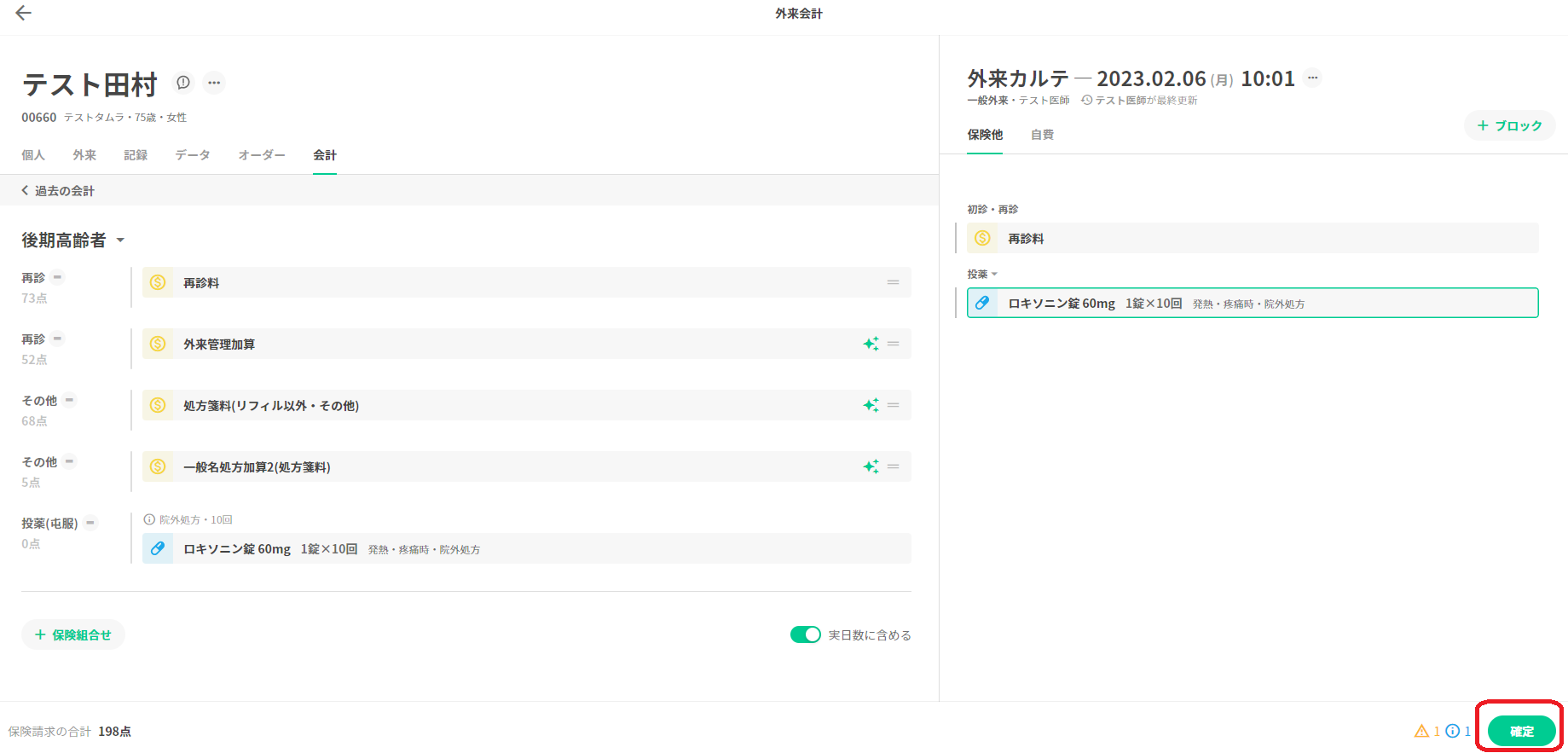 「診察を終了」ボタンを押すまでは、診察前のカルテ、診察中のカルテの入力内容が自動保存されます。