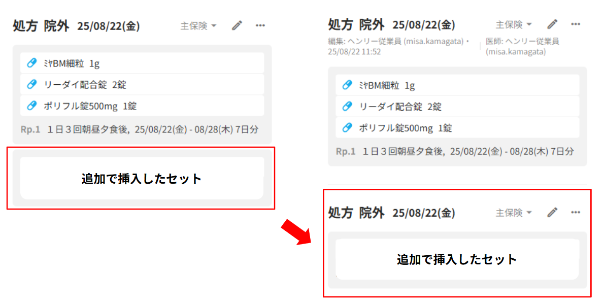 「新規オーダー」の機能を利用せずに、セットを使う場合、挿入する対象のオーダーを指定することは現状できません。2025年8月現在、自動的に一番下のオーダーに挿入されます。