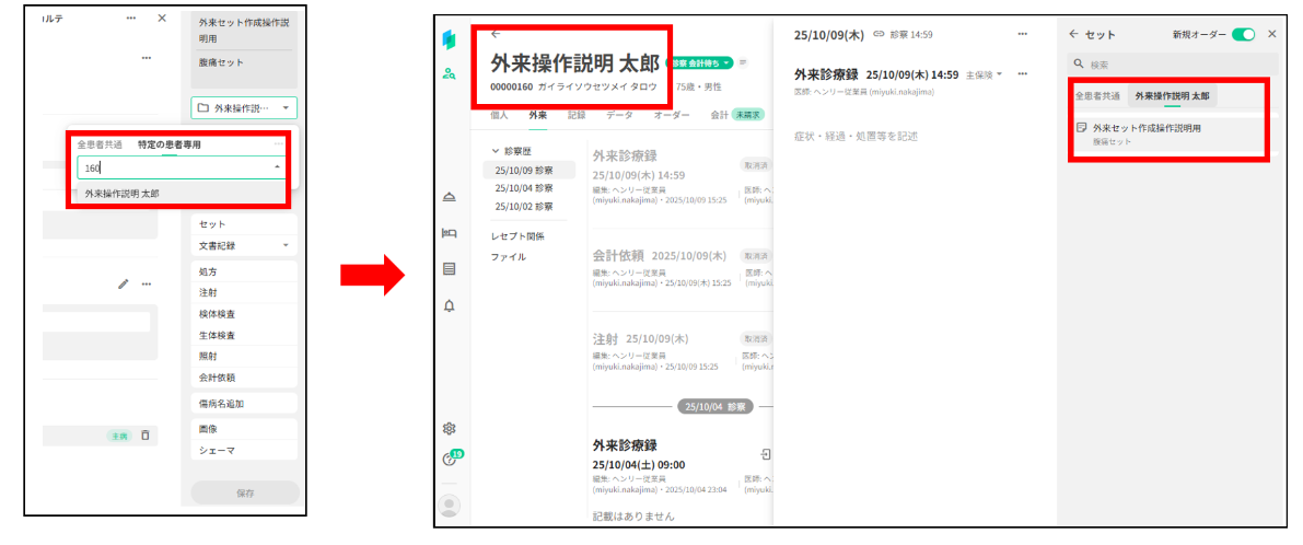 【設定】→【外来カルテ】から編集したいセットを選択し開きます