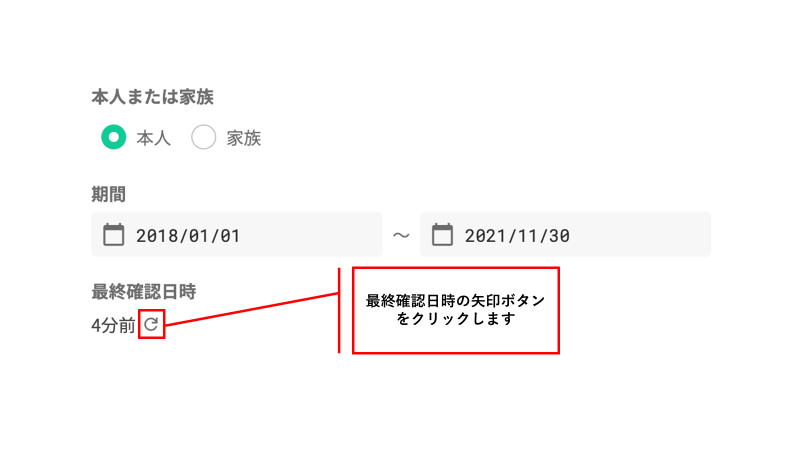 3.「最終確認日時」横の矢印をクリックして時刻を更新します。