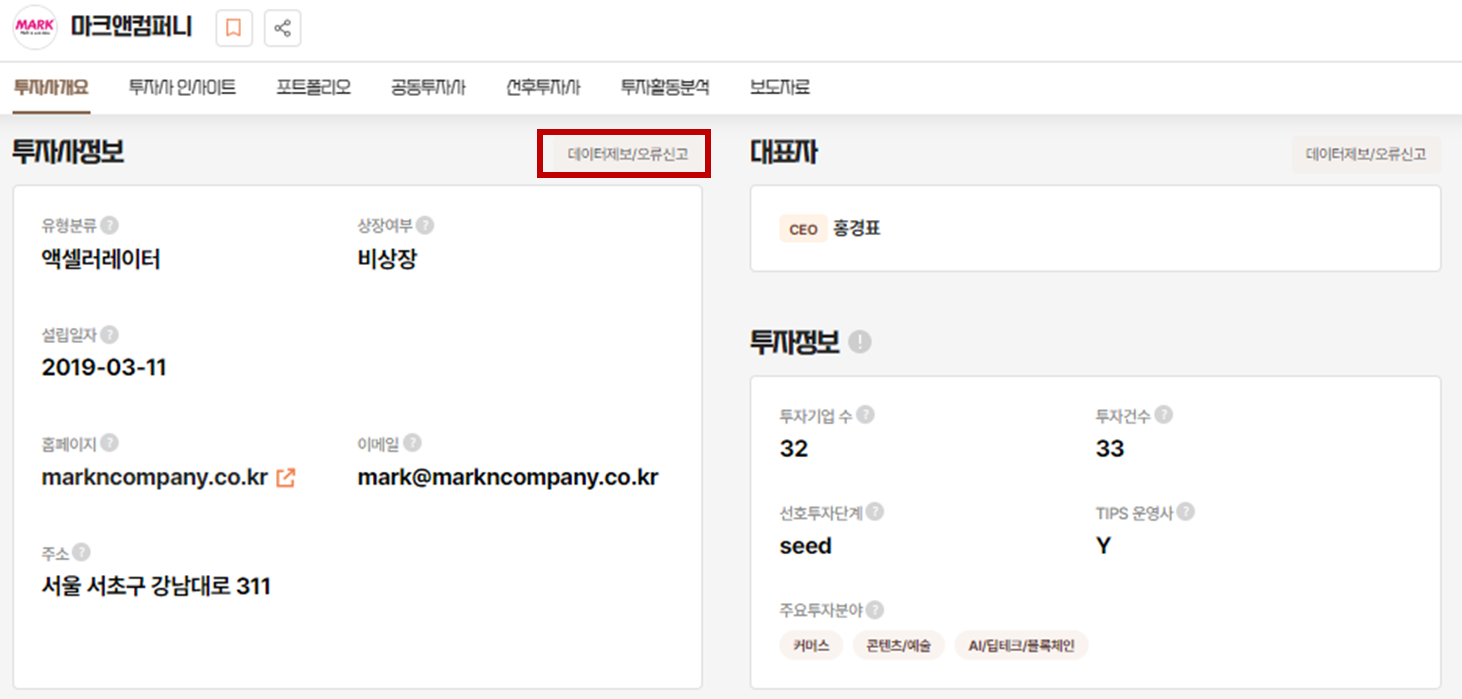 κ° ν¬μμ¬ μμΈ νμ΄μ§μμ μ λ°μ΄νΈλ₯Ό ν¬λ§νμλ λ°μ΄ν° νλͺ©μ μ°μΈ‘ μλ¨ λ°μ΄ν°μ 보/μ€λ₯μ κ³ λ²νΌ ν΄λ¦νμ¬ μ 보 λΆνλλ¦¬κ² μ΅λλ€. μ 보ν΄μ£Όμ λ΄μ©μ κ²μ ν μ λ°μ΄νΈ μ§νμ λμλλ¦¬κ² μ΅λλ€.