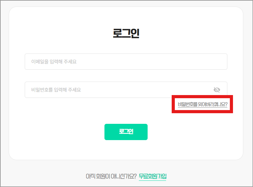 λΉλ°λ²νΈλ₯Ό λΆμ€νμ κ²½μ°μλΒ λ‘κ·ΈμΈ νμ΄μ§ βΆοΈ [λΉλ°λ²νΈλ₯Ό μμ΄λ²λ¦¬μ ¨λμ?] ν΄λ¦νμ¬ λΉλ°λ²νΈ μ¬μ€μ μ΄ κ°λ₯ν©λλ€.