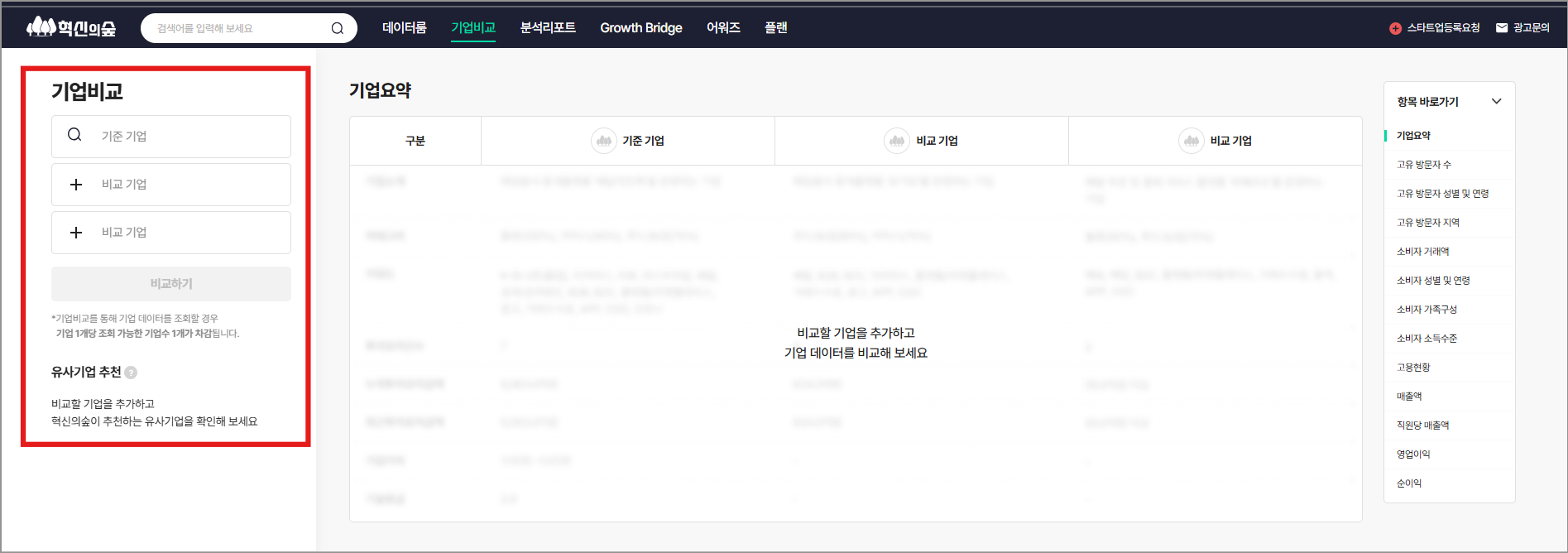 μ¬λ¬ κΈ°μ μ λ°μ΄ν°λ₯Ό νλμ λΉκ΅ν μ μλ κΈ°λ₯μΌλ‘, μ νν κΈ°μ μ λ°©λ¬ΈμλΆμ λ°μ΄ν°, μλΉμ κ±°λμ‘, ν¬μ μ μΉ λ°μ΄ν° λ° μΆμ κΈ°μ κ°μΉ λ±μ λͺ¨λ λΉκ΅ν μ μμ΅λλ€.