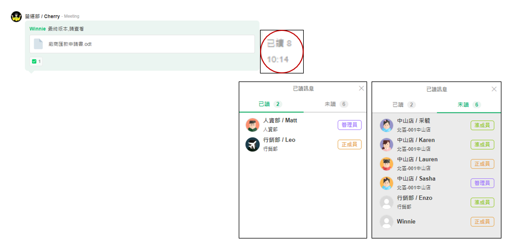 1. 準成員無法查看:僅限正成員(含) 以上查看 [已讀未讀清單]。