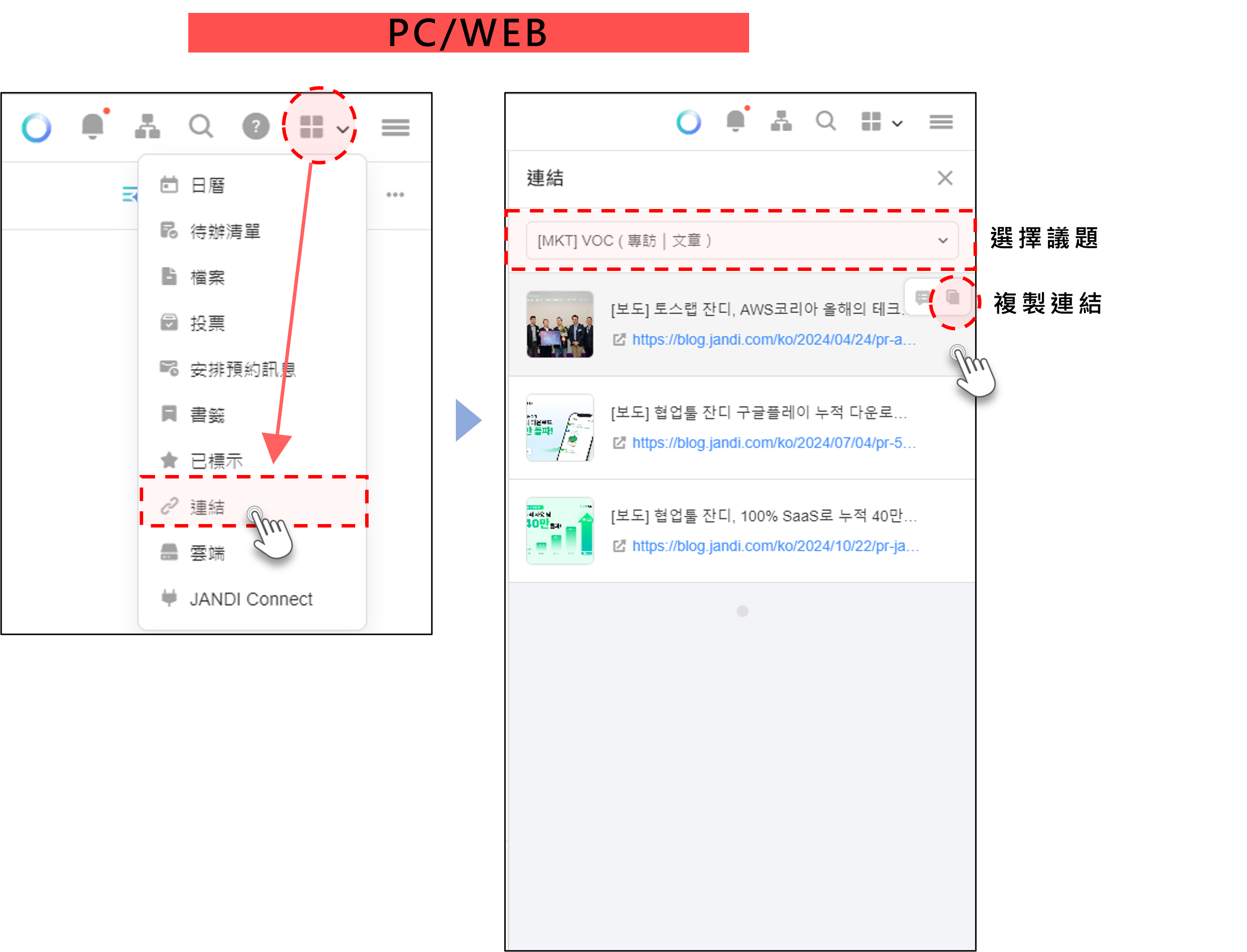 議題內查看連結:議題右上角 [...] 更多 > [查看連結]