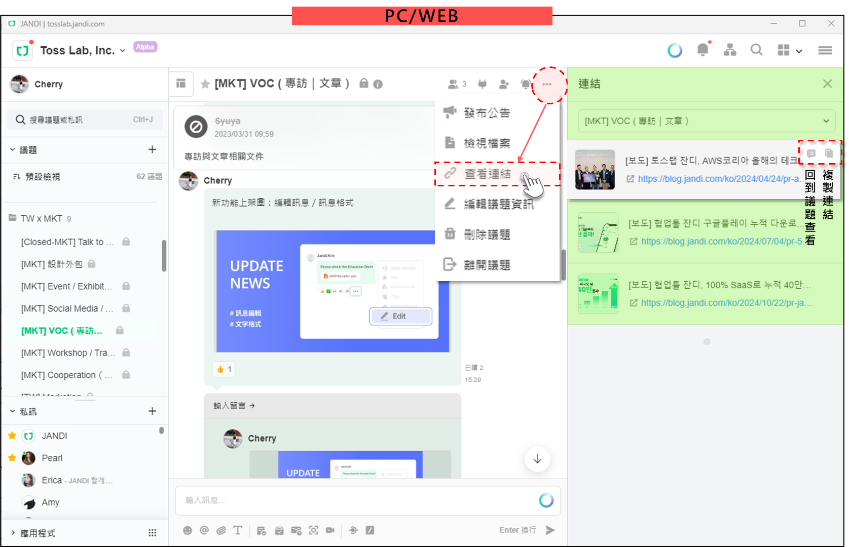 以前議題內共享的連結很難找查,現在我們新增了「查看連結」的功能。一起來看看吧!