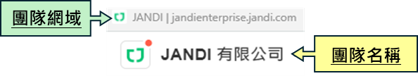 • 團隊網域是您的 JANDI 平台專屬網址。您可以透過此網域直接在瀏覽器中快速訪問您的 JANDI 團隊。
