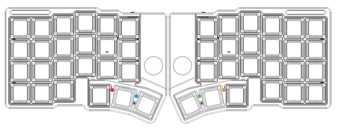 初期設定では、MO(3) に割り当てられたキーを押しながらCaps / Shift / Ctrl を押すことで、Bluetooth デバイスを切り替えることができます。