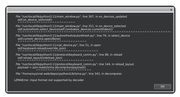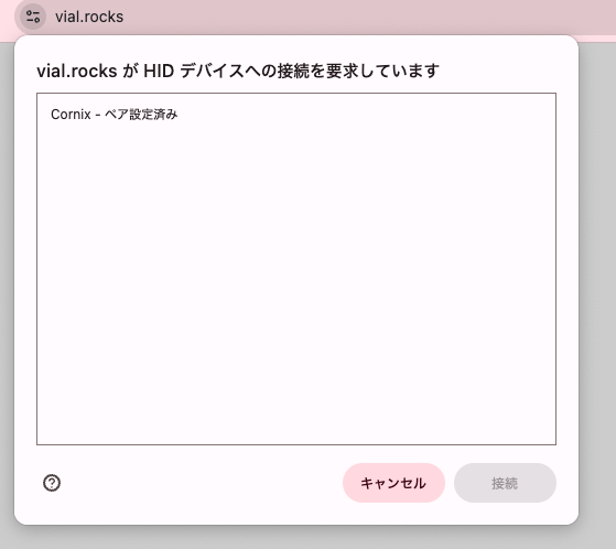 ブラウザを再起動し、Vial のページを再読み込みする