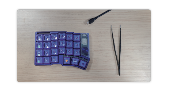 上記の方法でも問題が解消しない場合は、左手側ユニットを USB ケーブルで PC に接続し、有線モードでキーマップ変更を行ってください。