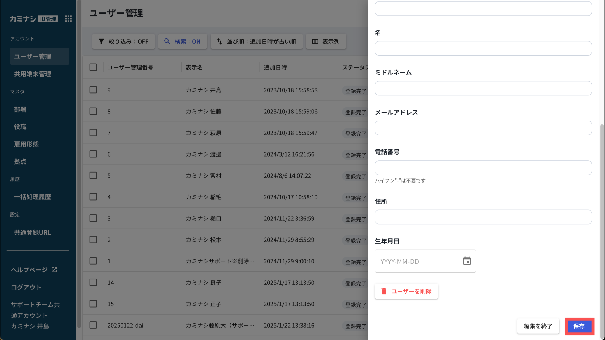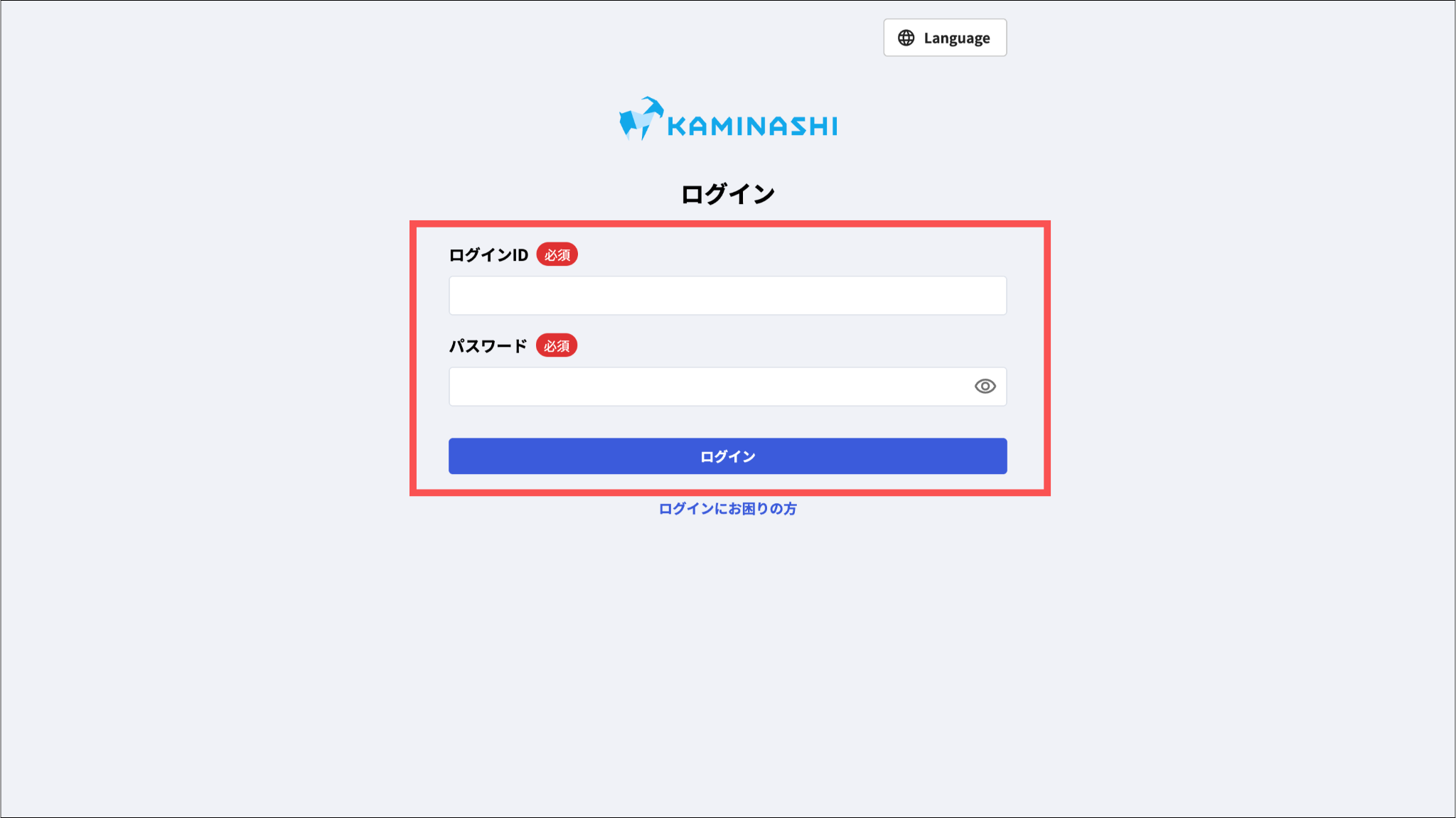 カミナシレポート・カミナシ従業員・カミナシ教育・カミナシ設備保全・カミナシID管理のいずれかにアクセスします。
