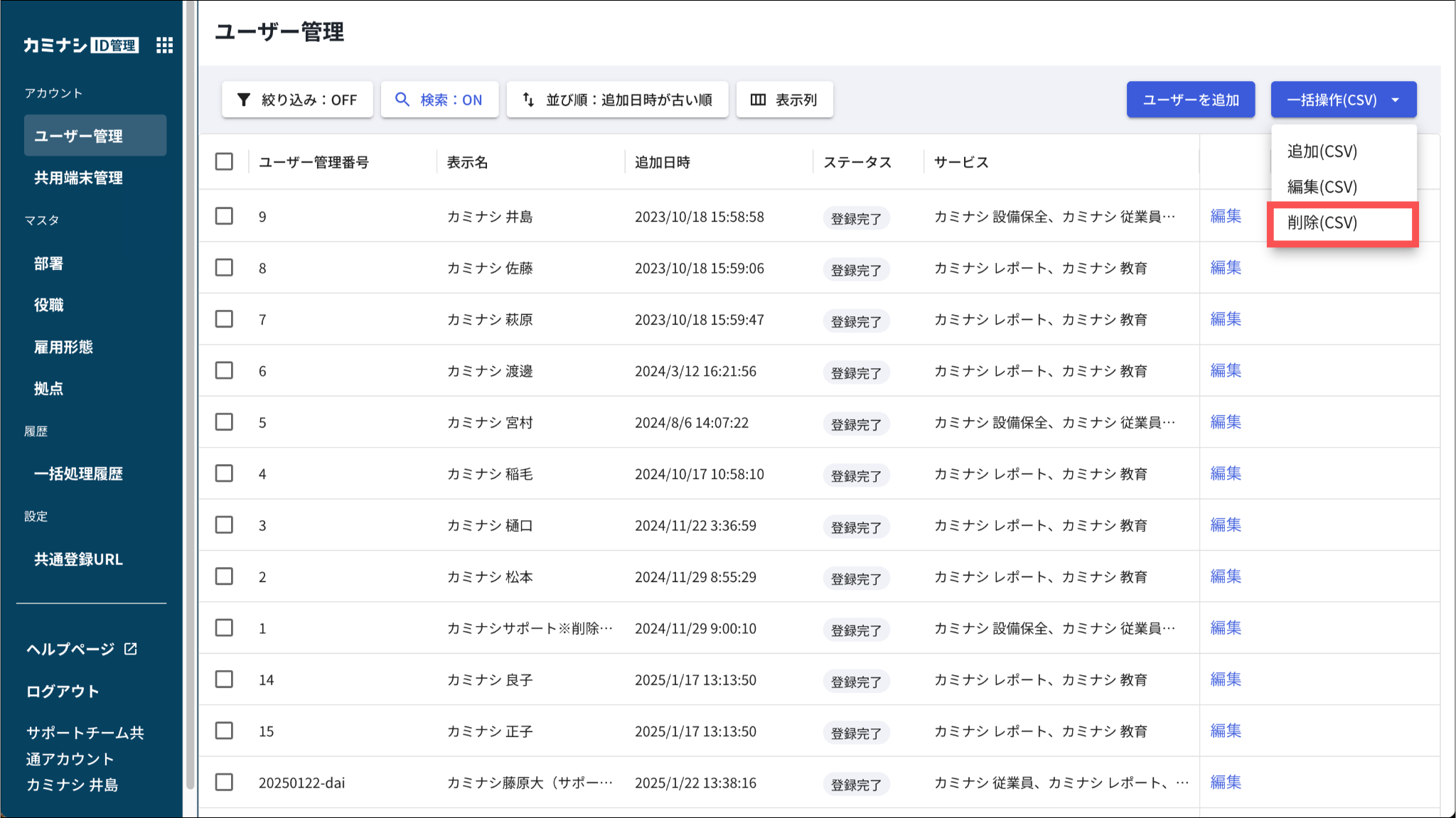 削除されたユーザーは、すぐにカミナシのサービスを利用できなくなり復元できませんのでご注意ください。