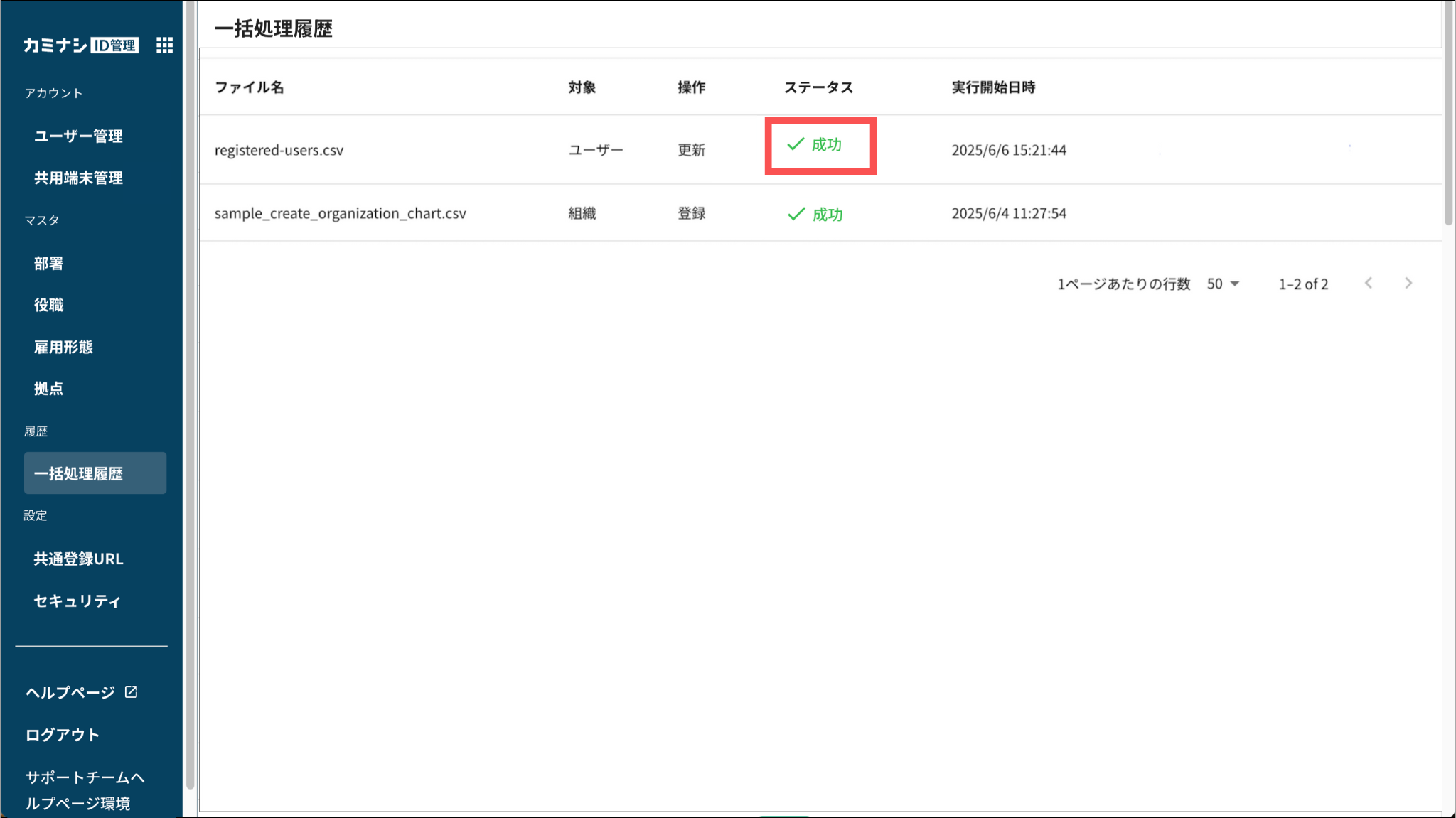 なお、本機能ではCSVファイル内の「ユーザー管理番号」を起点に、記載されているユーザー情報を一括で更新します。