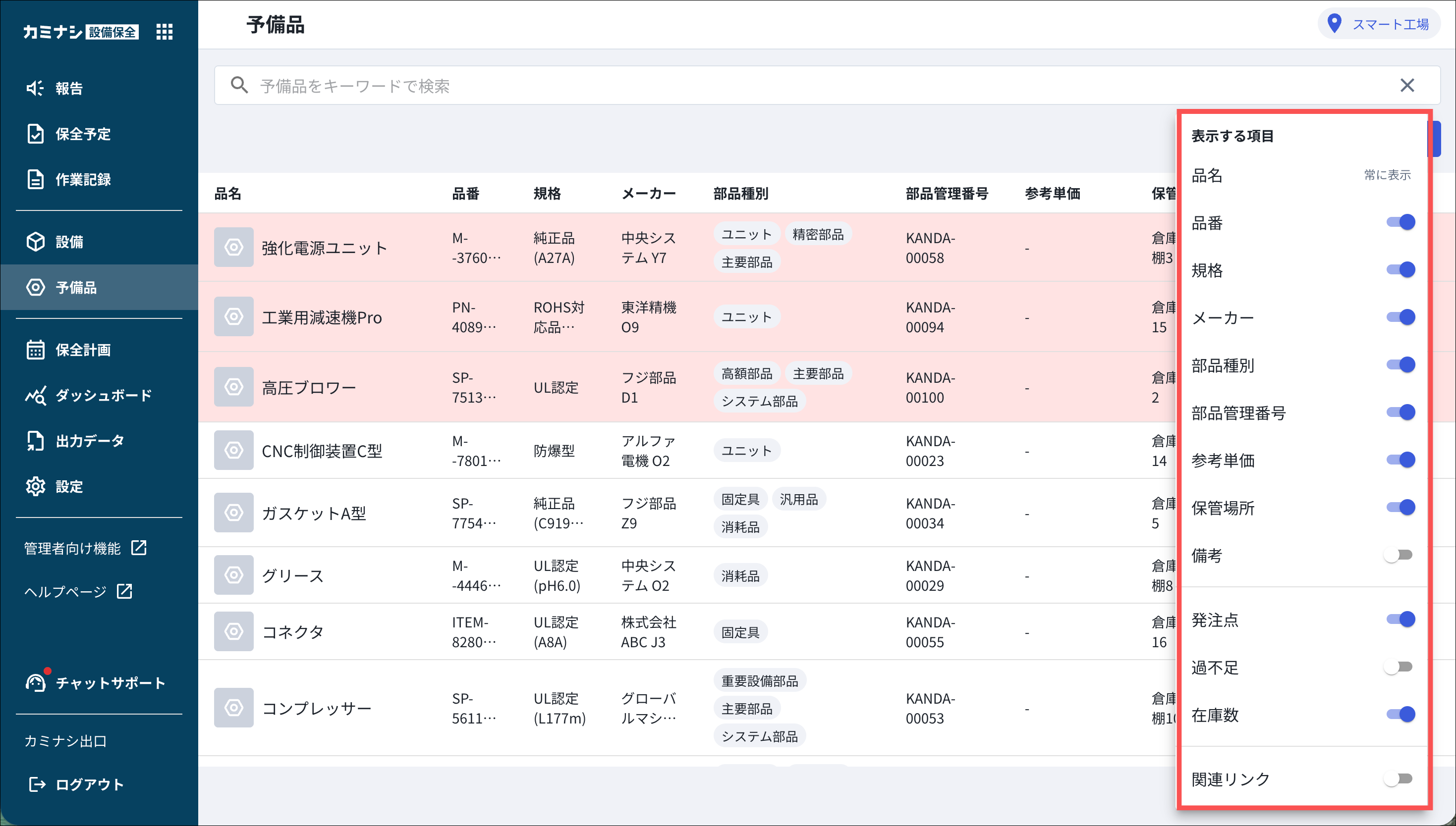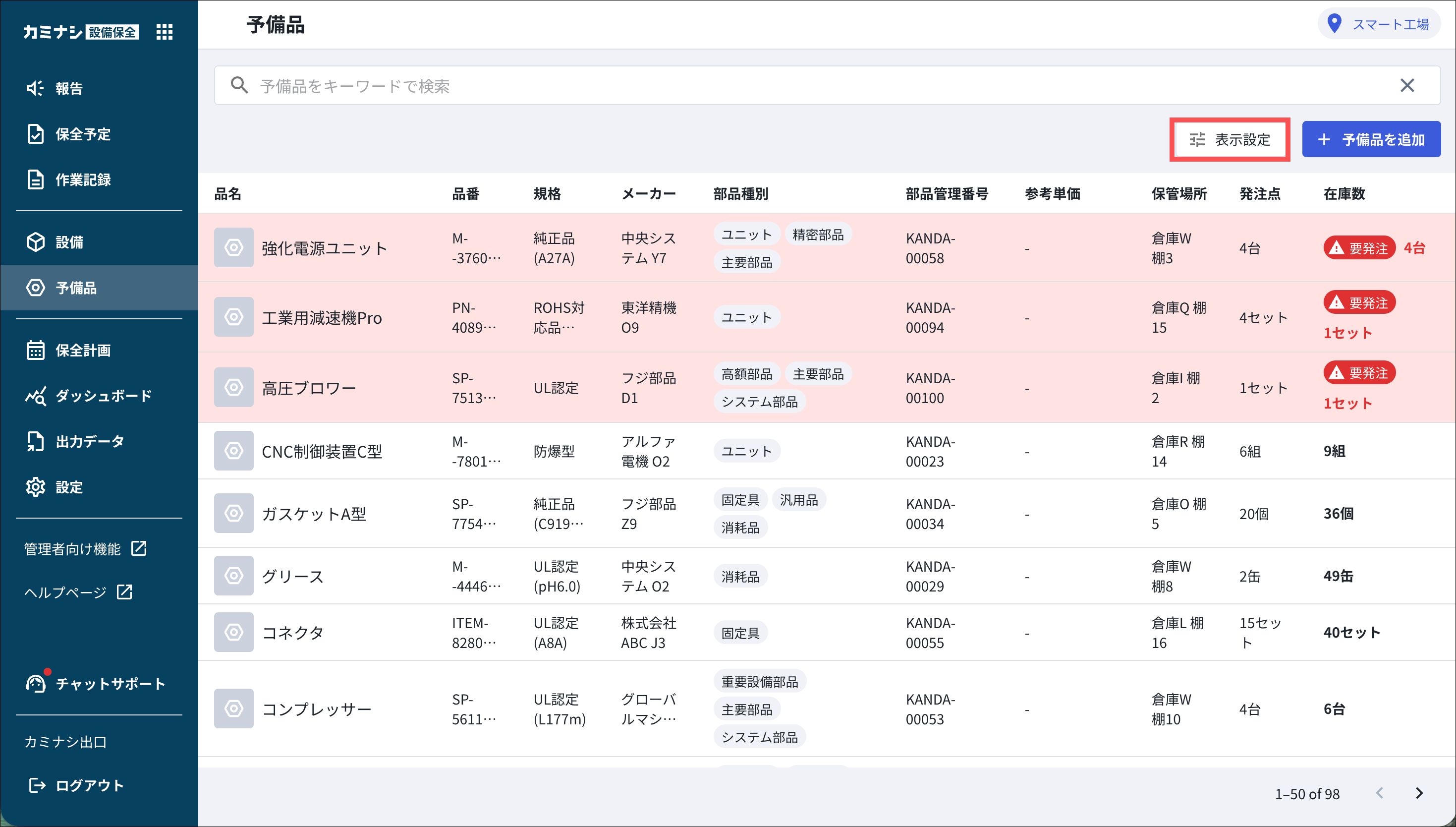 表示項目のカスタマイズは、ユーザーごとに設定できます。