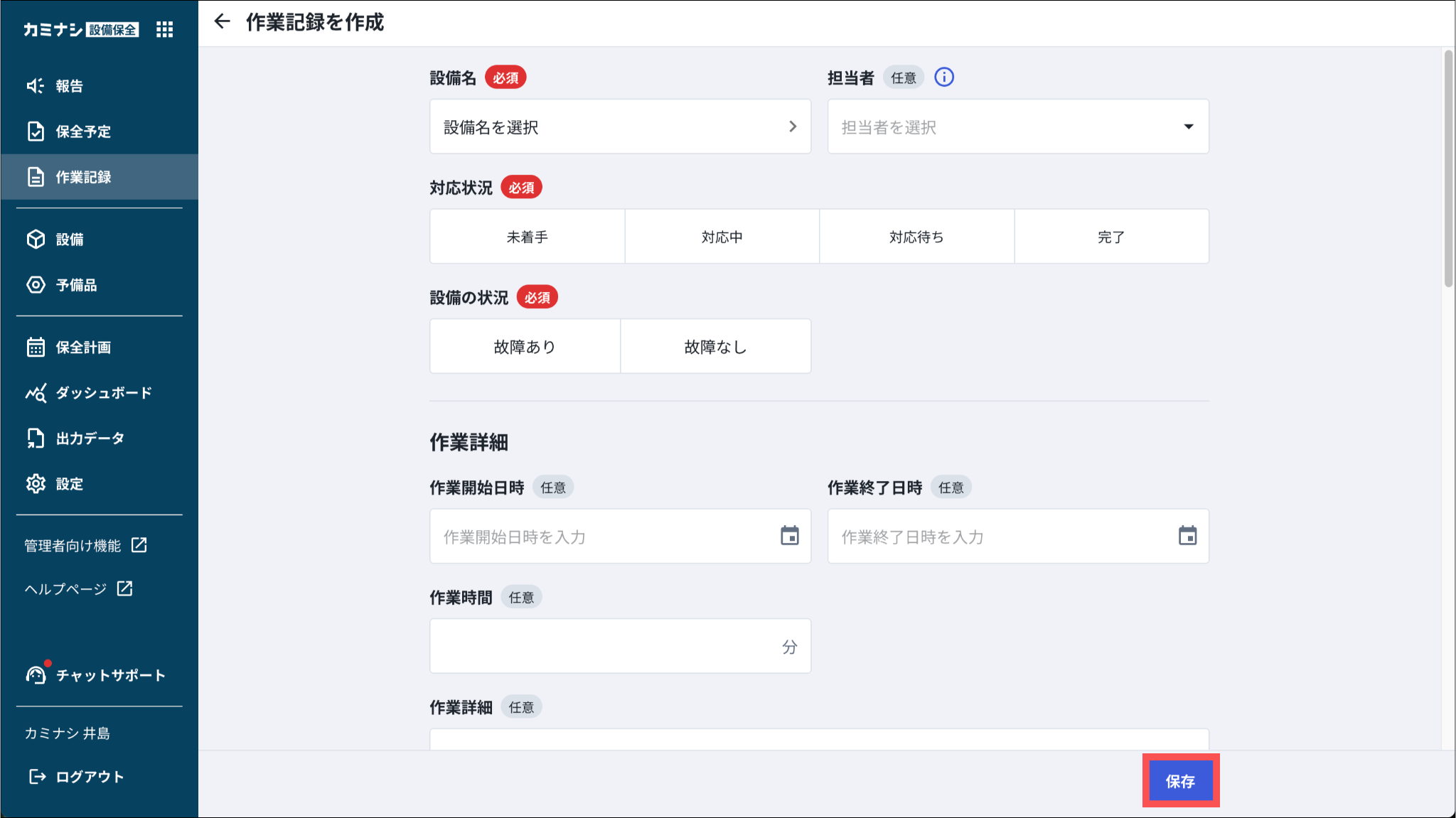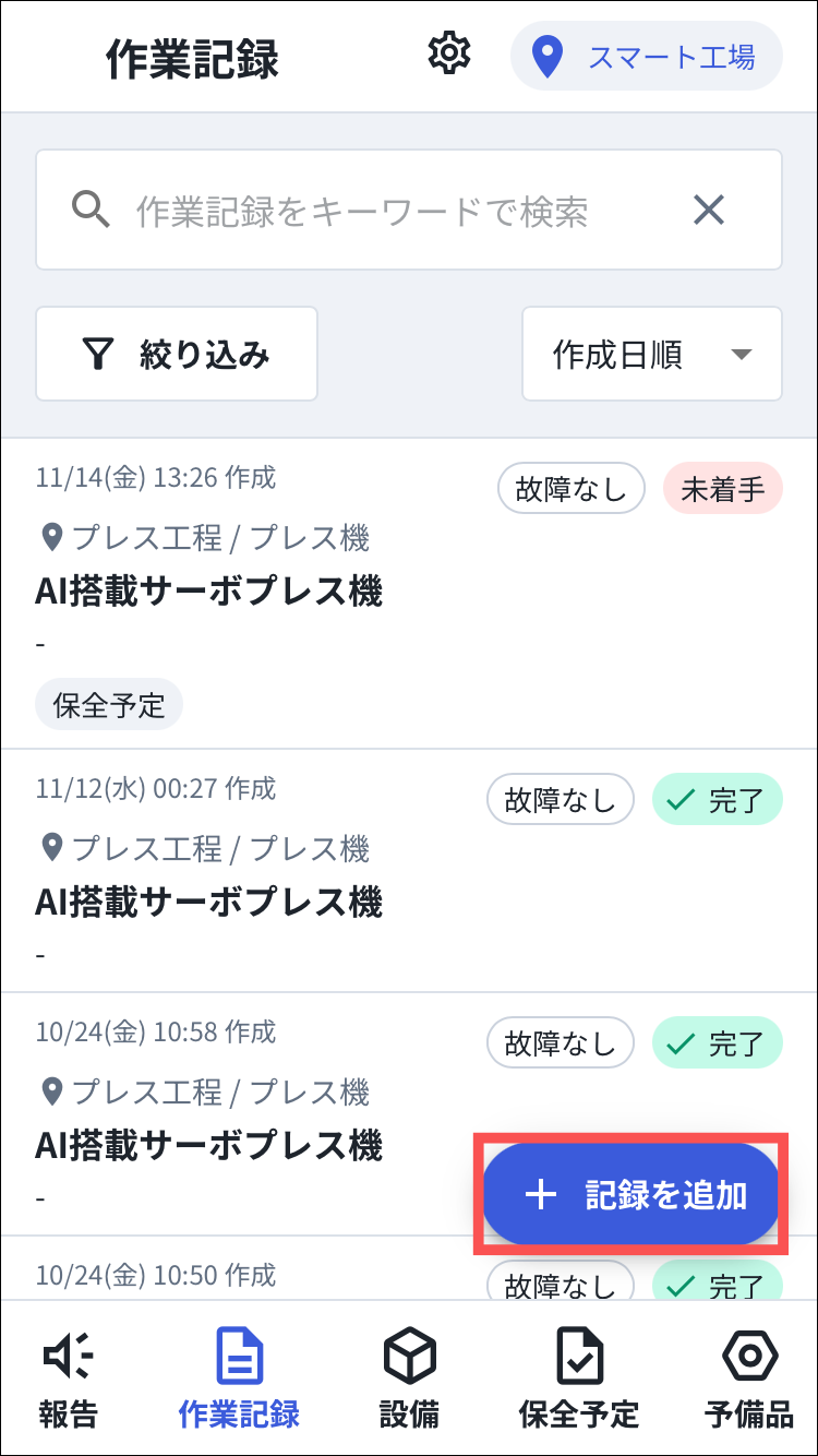 現場担当者が実際に作業に取りかかったタイミングを入力します。