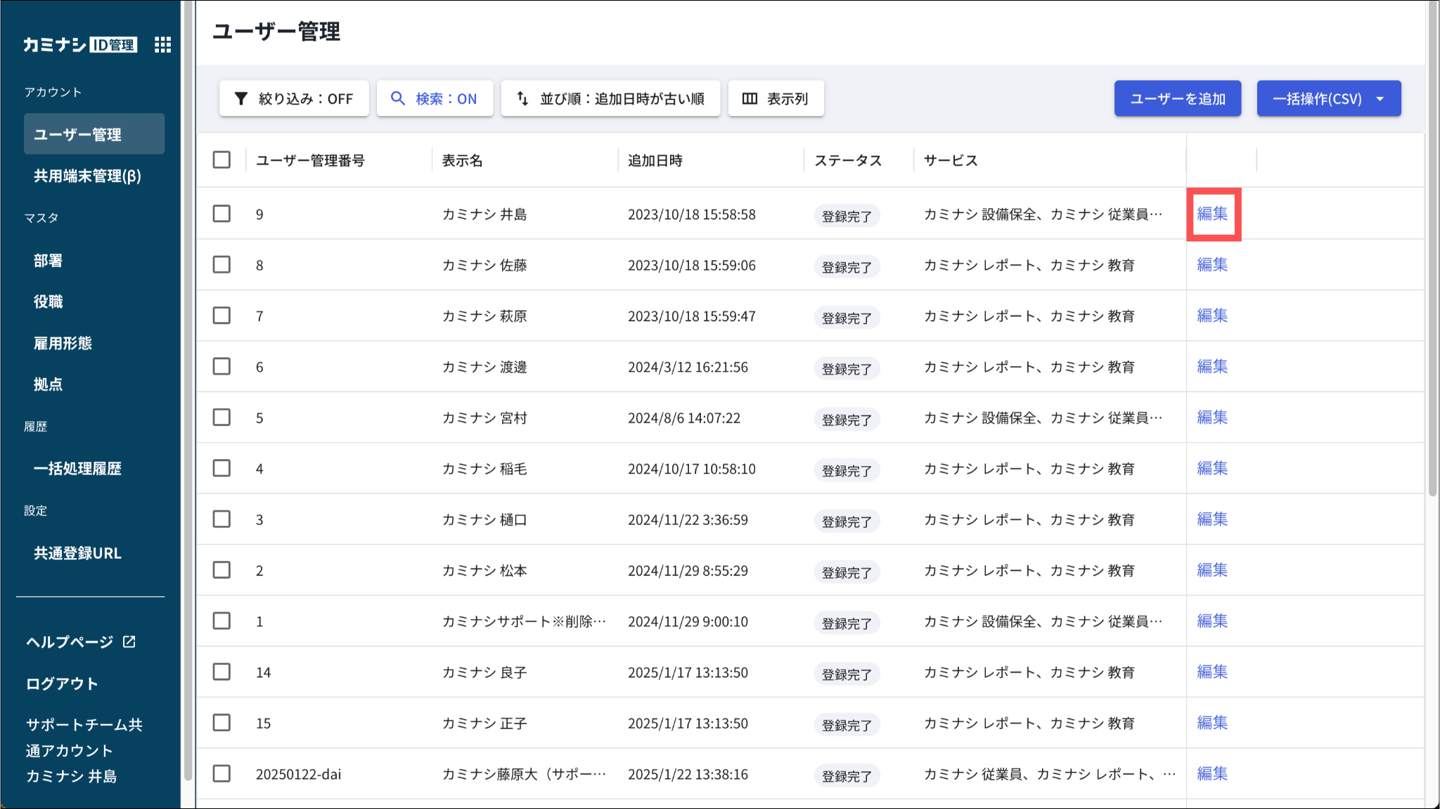 削除方法については、「ユーザーを個別に削除する」をご参照ください。