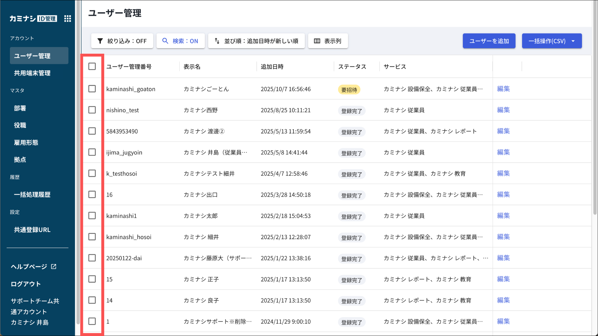 なお、期限切れになってしまった場合、「2.「ユーザー管理」を開き、招待するユーザーにチェックを入れる」から再度招待を行って下さい。