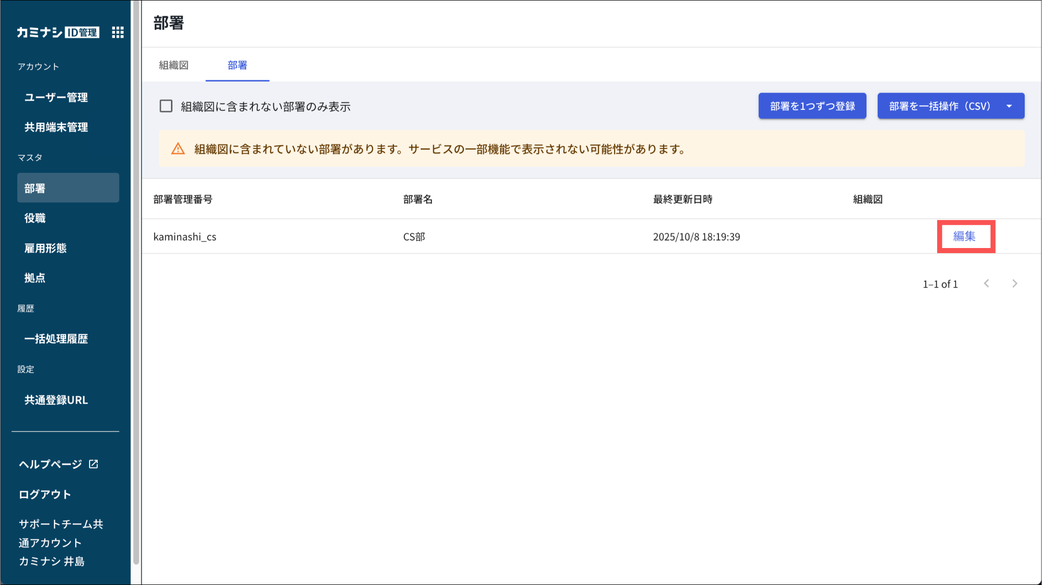 編集方法については「部署・役職・雇用形態・拠点を個別に編集する」をご参照ください。