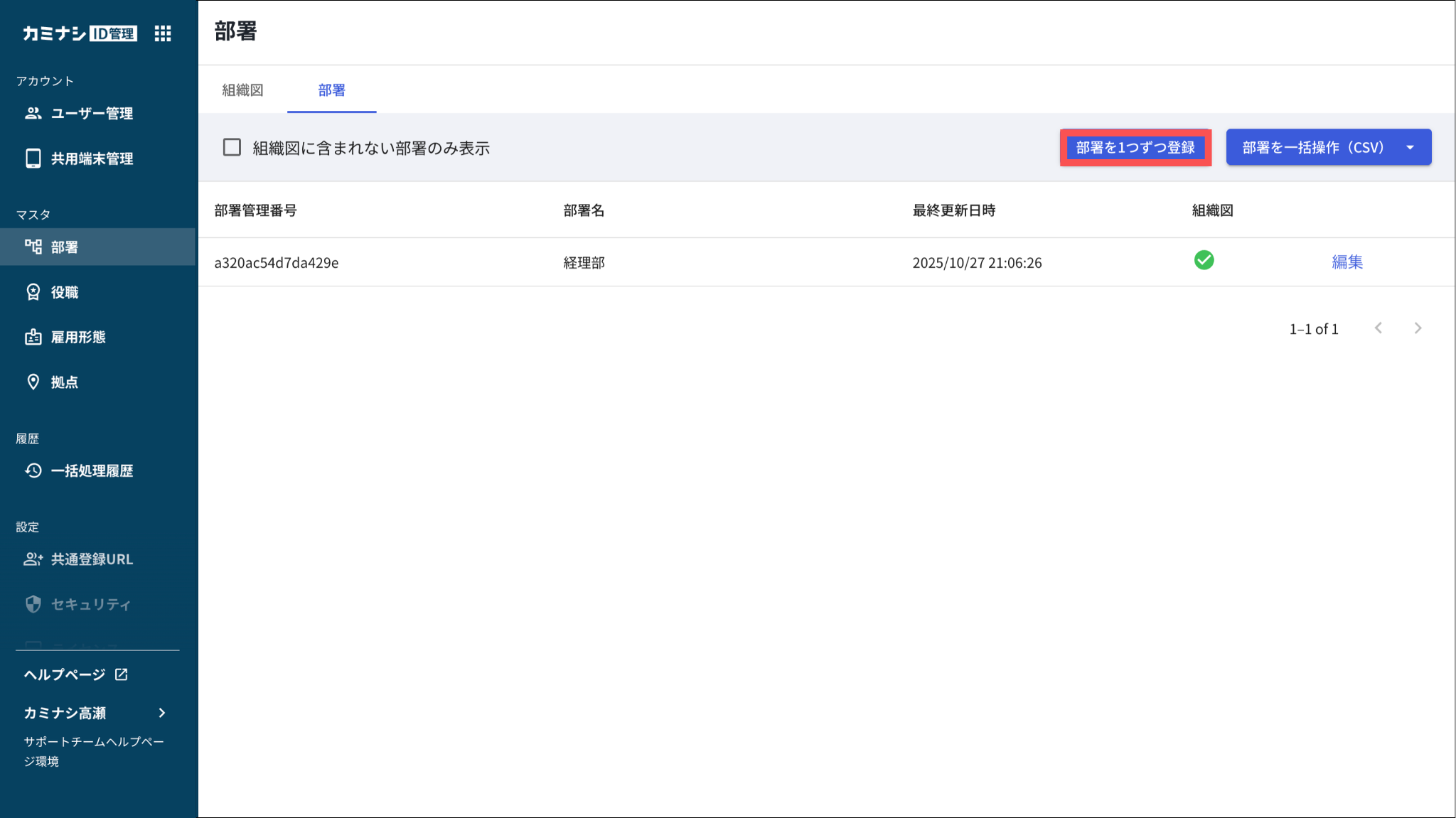 部署・組織図を個別に登録する