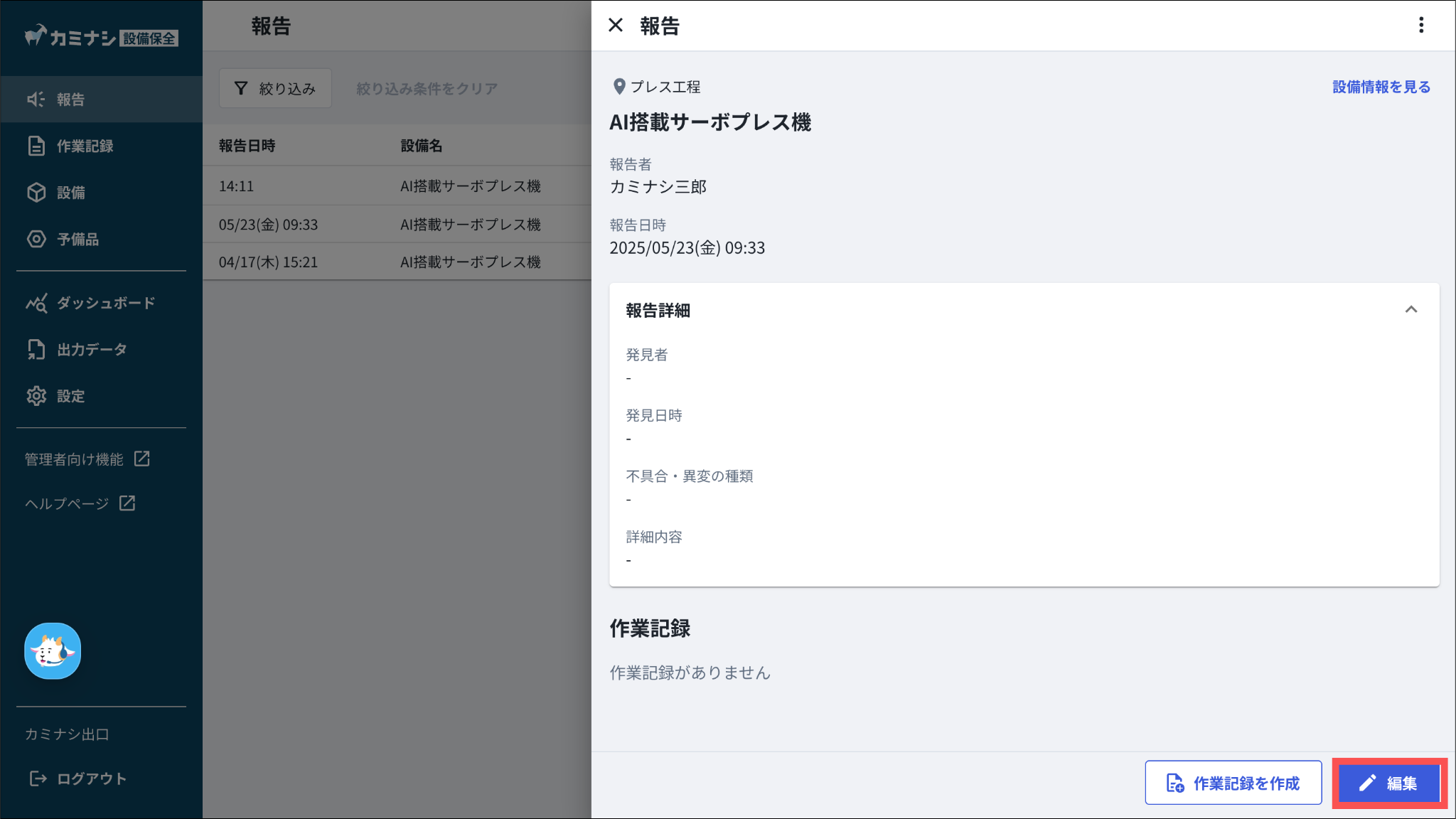 これまで一度保存した報告は再編集できませんでしたが、今回のリリースにより、一度保存した報告も後から再編集できるようになりました。
