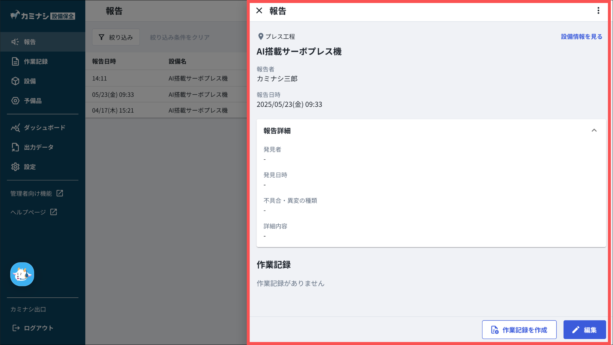 これまで報告一覧画面で詳細を開く際には、画面全体が切り替わる形式でしたが、今回のリリースにより、画面右側からスライドして表示される形式に変更しました。
