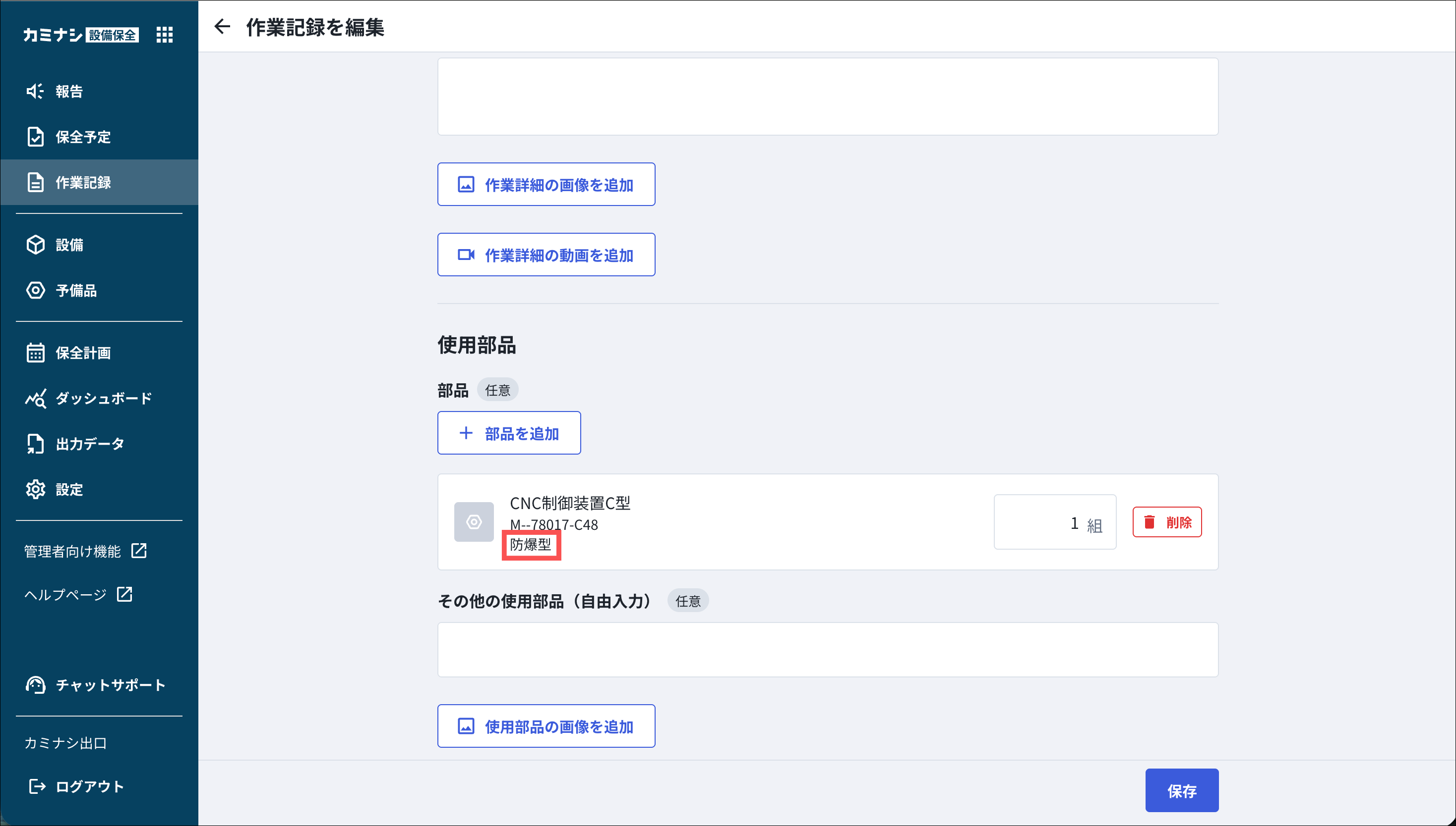 今回のリリースにより、作業記録・保全計画・保全予定の各画面で、使用部品を選択・確認する際に、「規格」が合わせて表示されるようになりました。