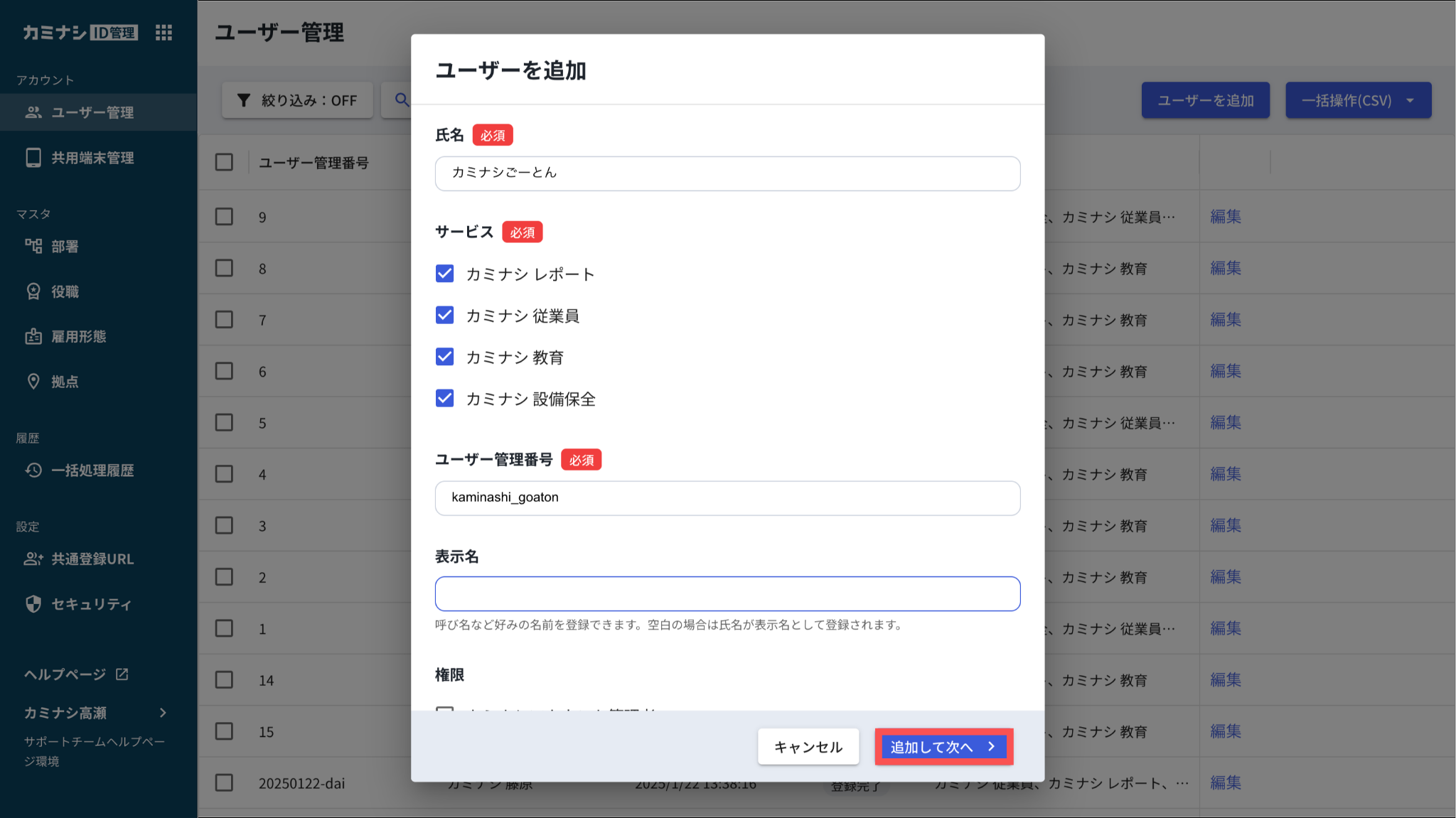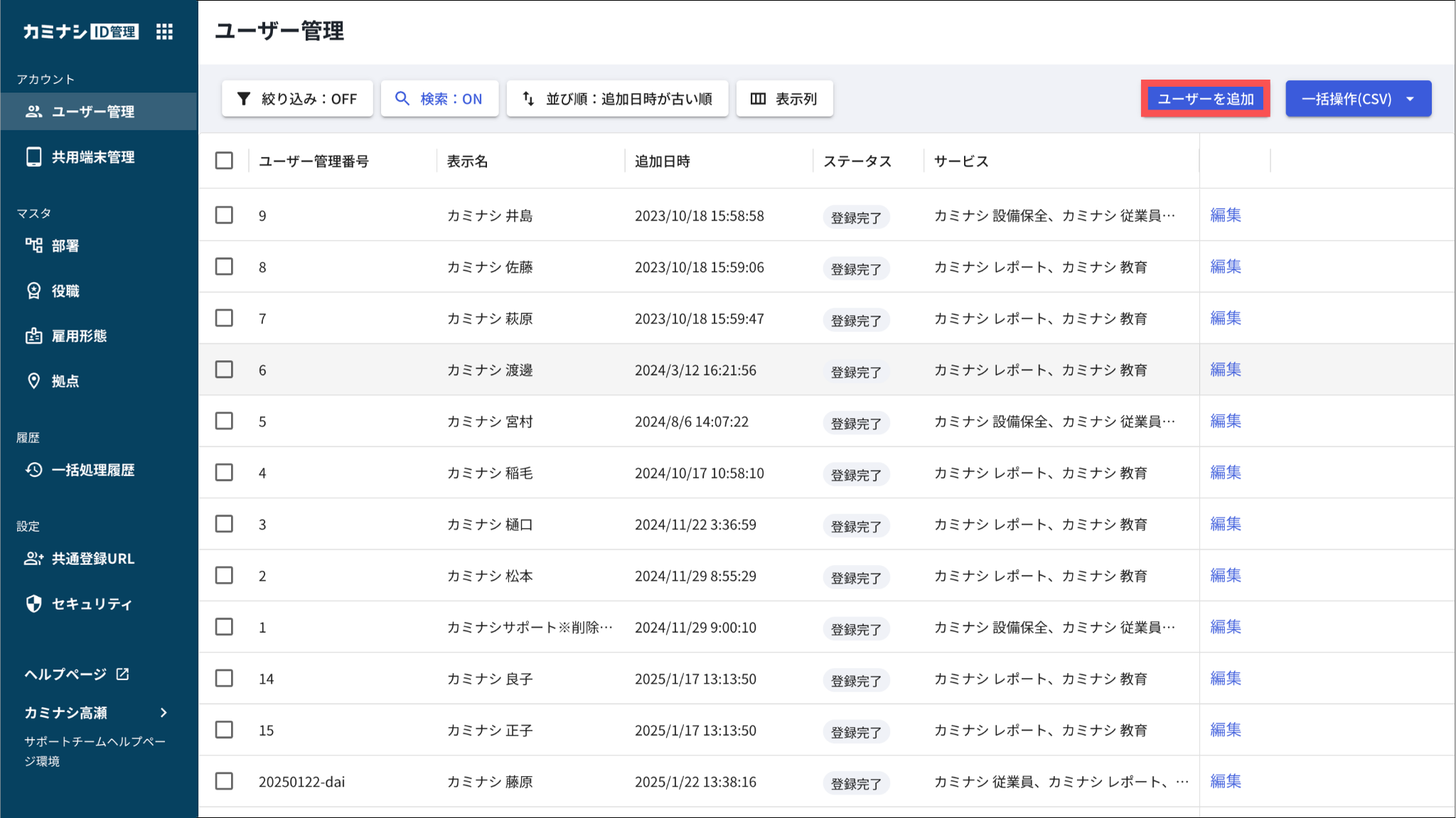 カミナシID管理