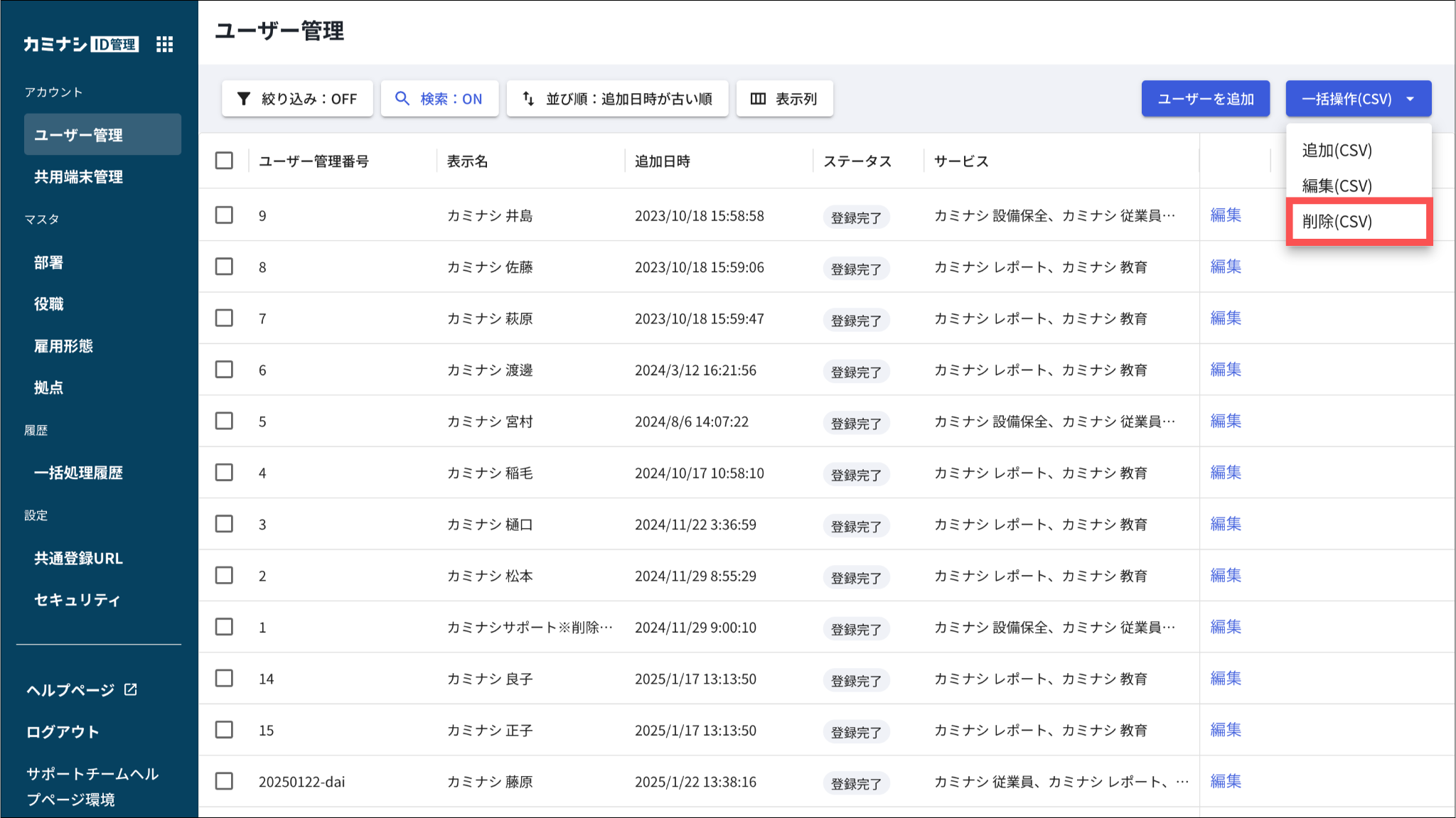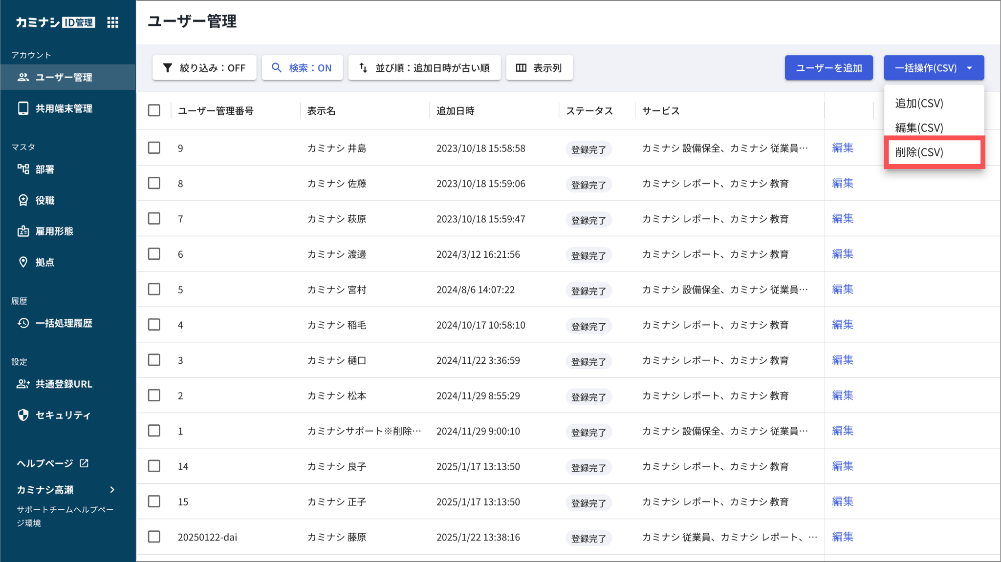 削除されたユーザーは、すぐにカミナシのサービスを利用できなくなり復元できませんのでご注意ください。