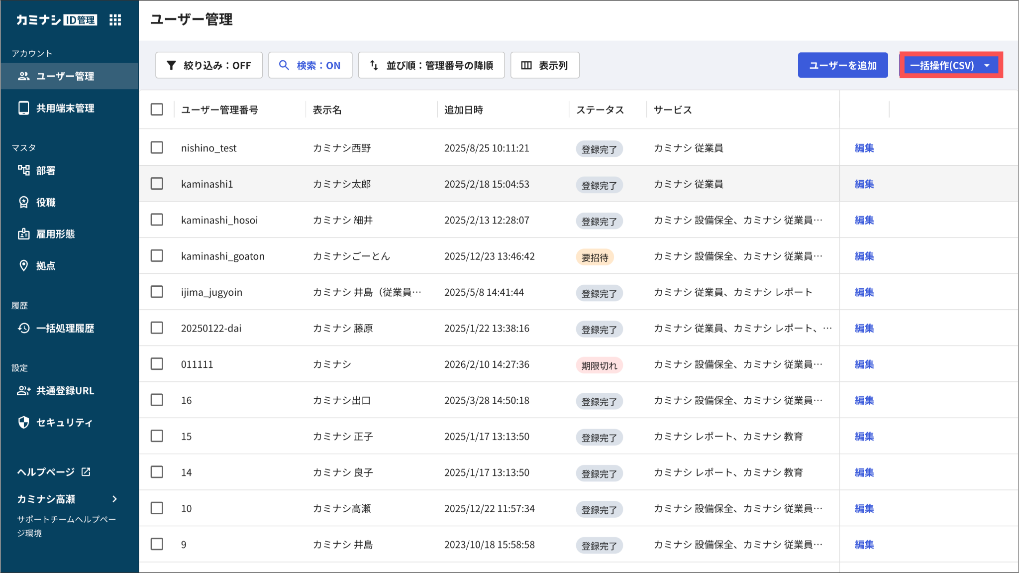 個別の編集方法については、「ユーザーを個別に編集する」をご参照ください。