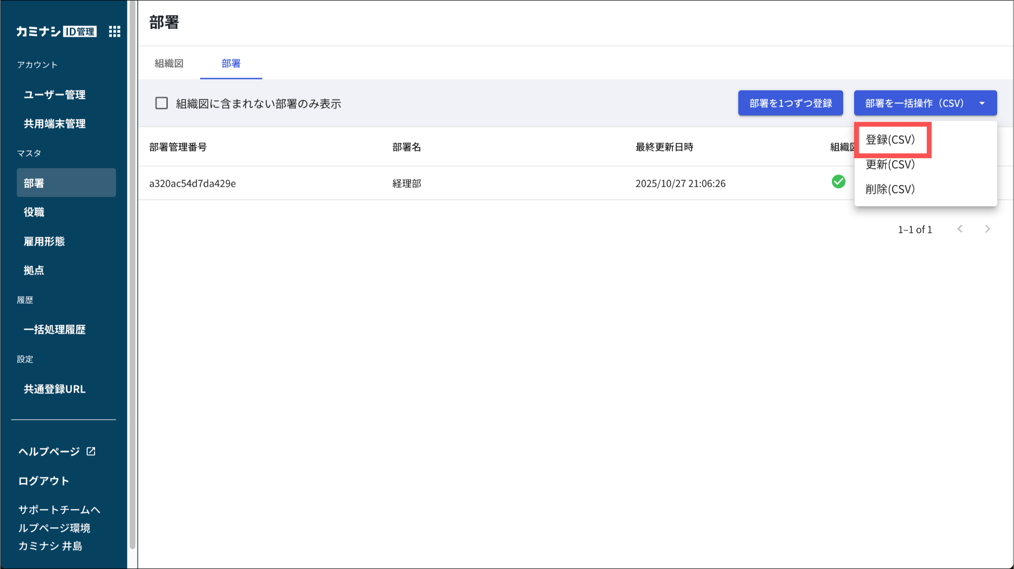 部署・役職・雇用形態・拠点をCSVで一括登録する